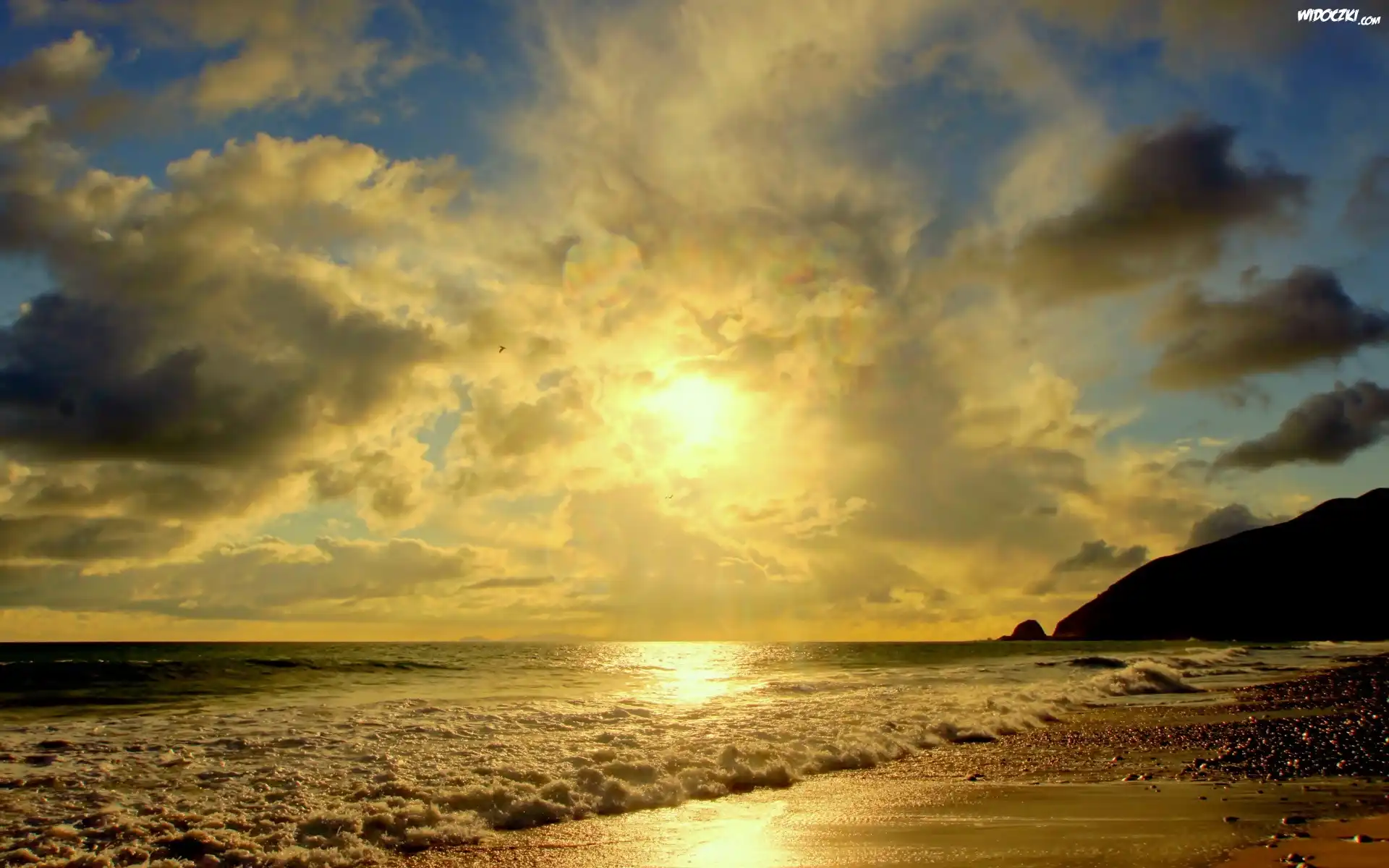 Wschód Słońca, Brzeg, Fale, Morze, Plaża