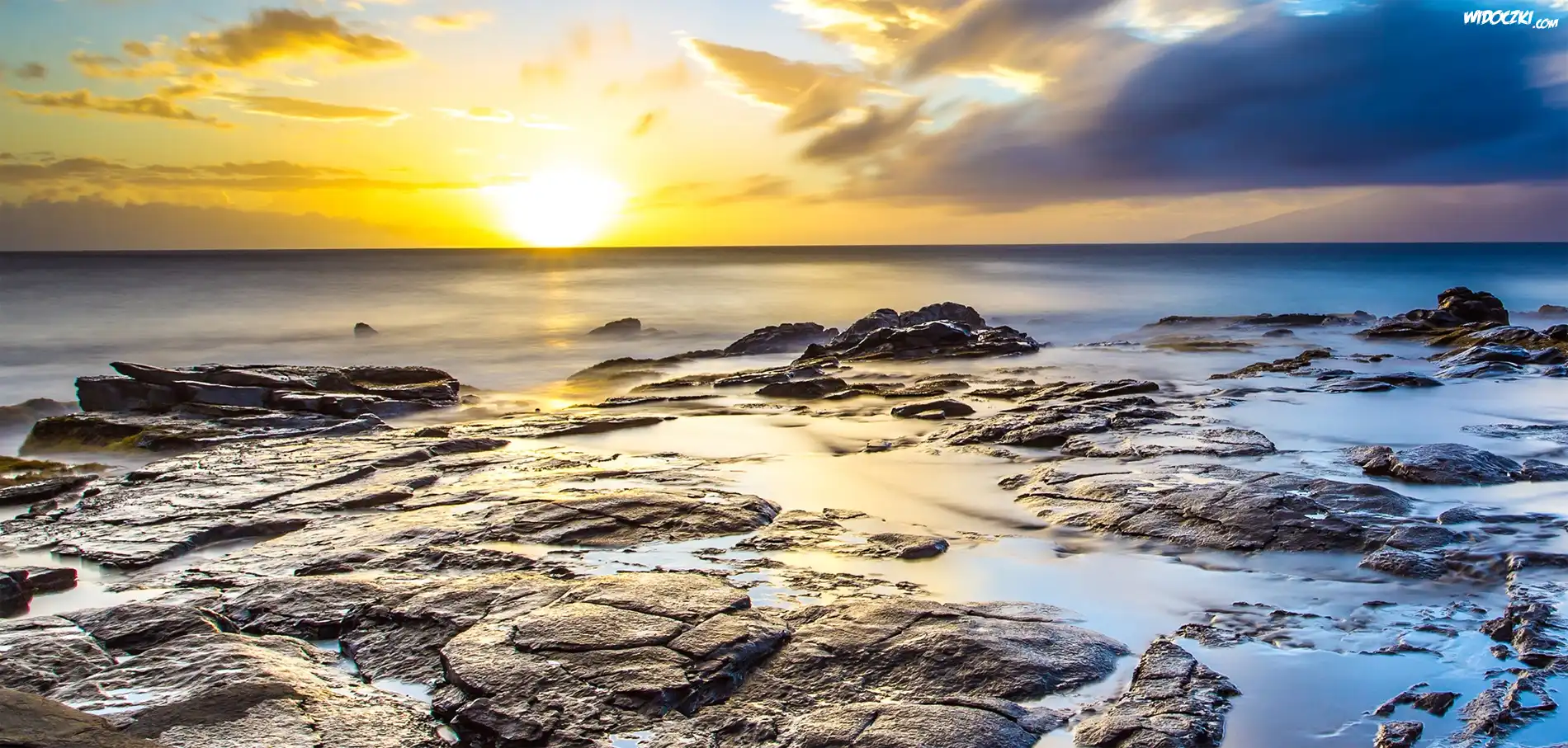 Zdjęcia, Wschód, Słońca, Morze, Kamienie