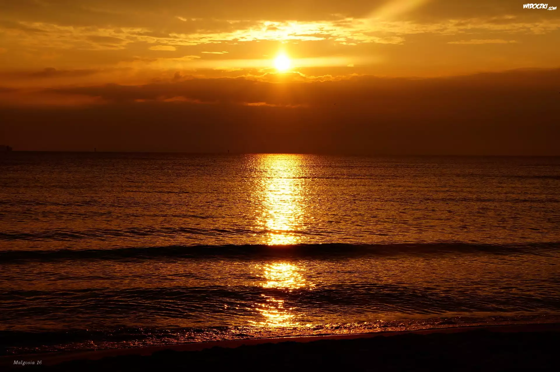 Zdjęcia, Wschód Słońca, Morze, Odbicie