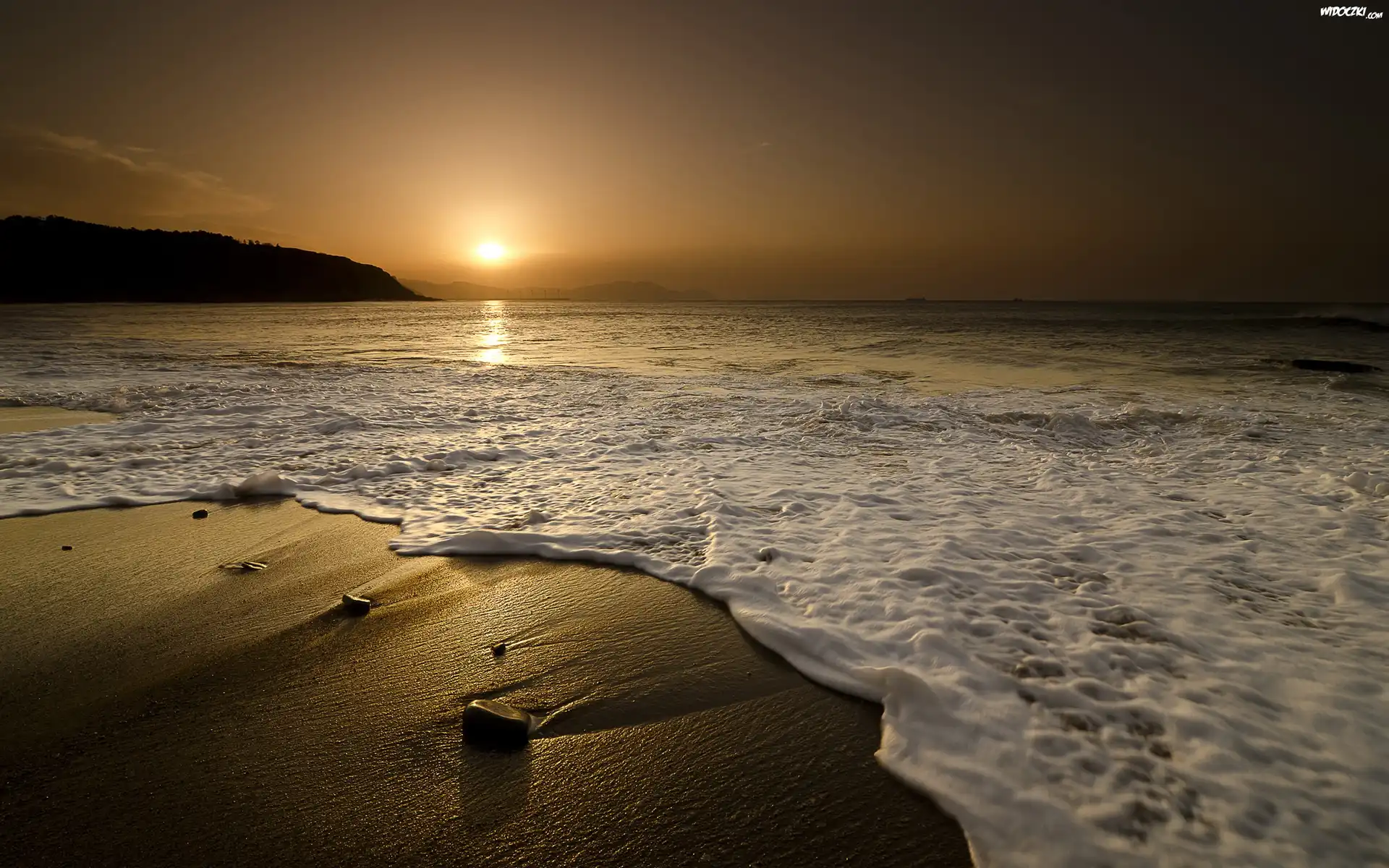Zdjęcia, Wschód, Słońca, Morze, Plaża