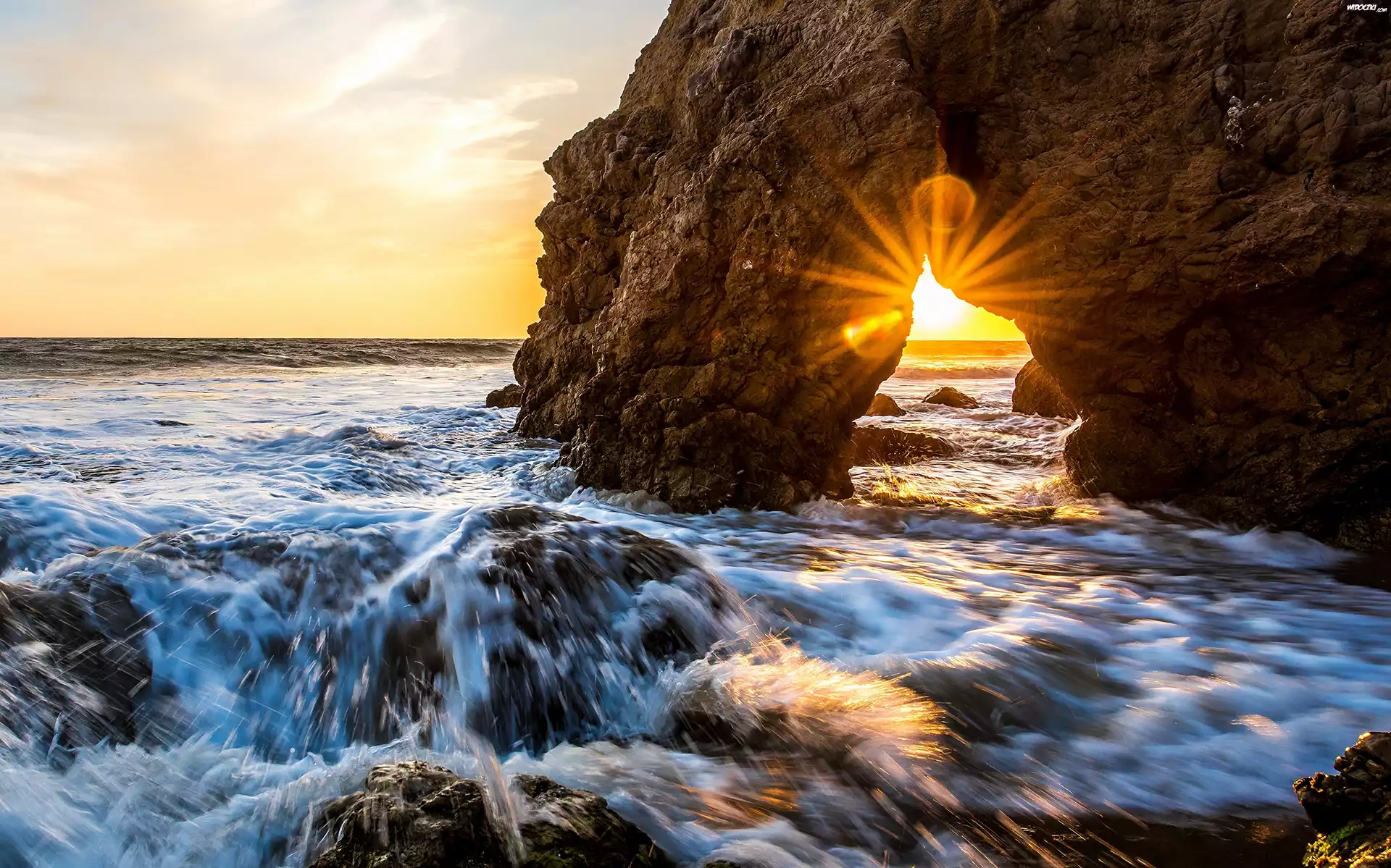 Zdjęcia, Wschód, Słońca, Morze, Skały