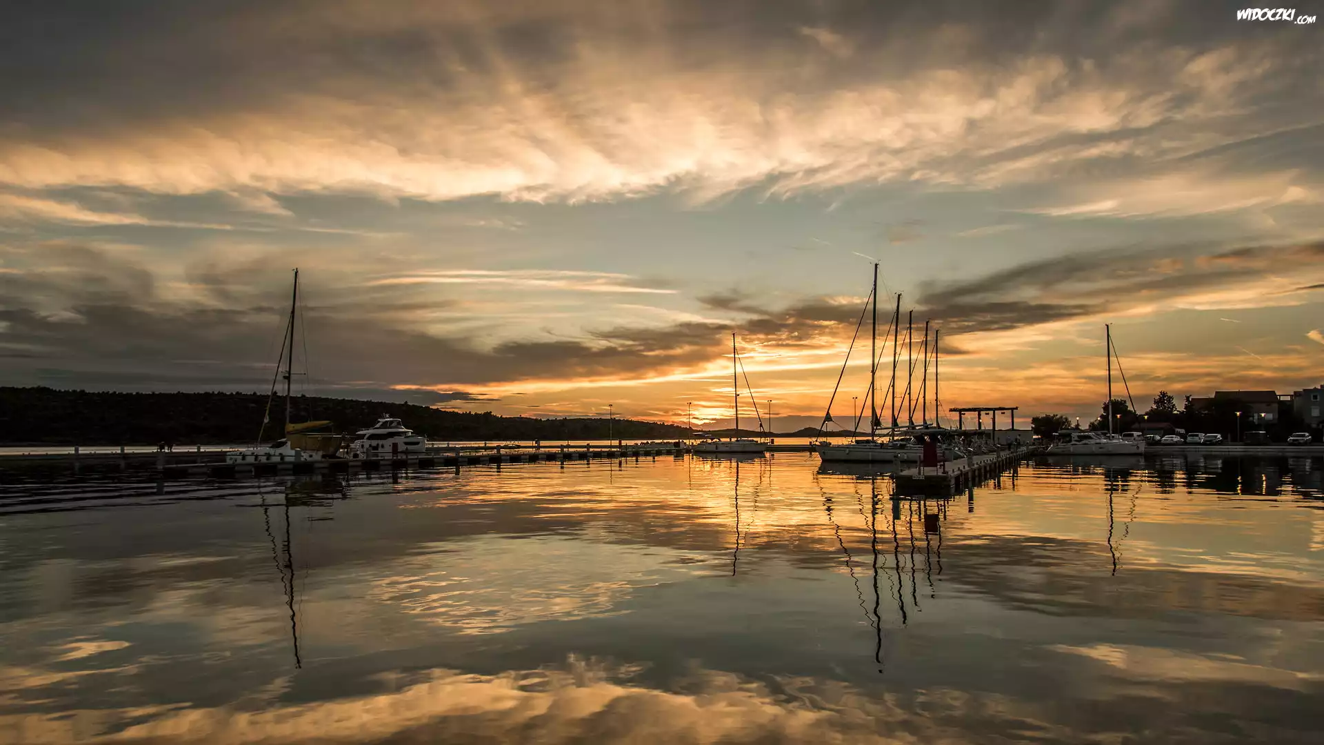 Zdjęcia, Wschód słońca, Żaglówki, Przystań, Pirovac, Chorwacja