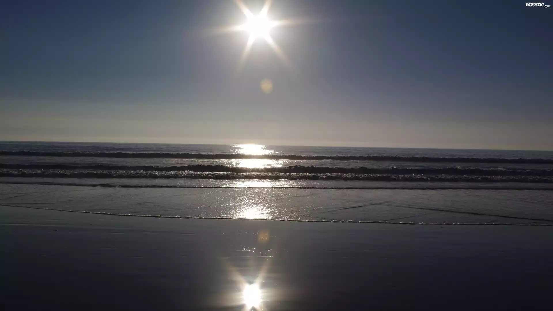 Wschód, Słońca, Morze, Plaża, Odbicie