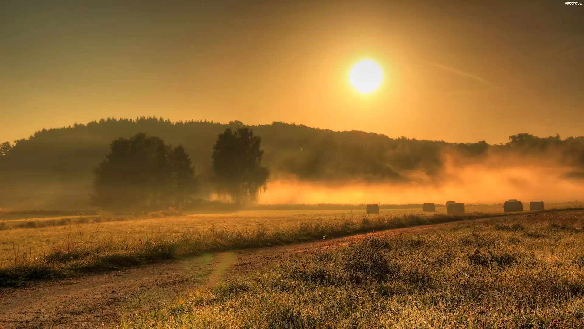 Zdjęcia, Wschód Słońca, Pole, Mgła