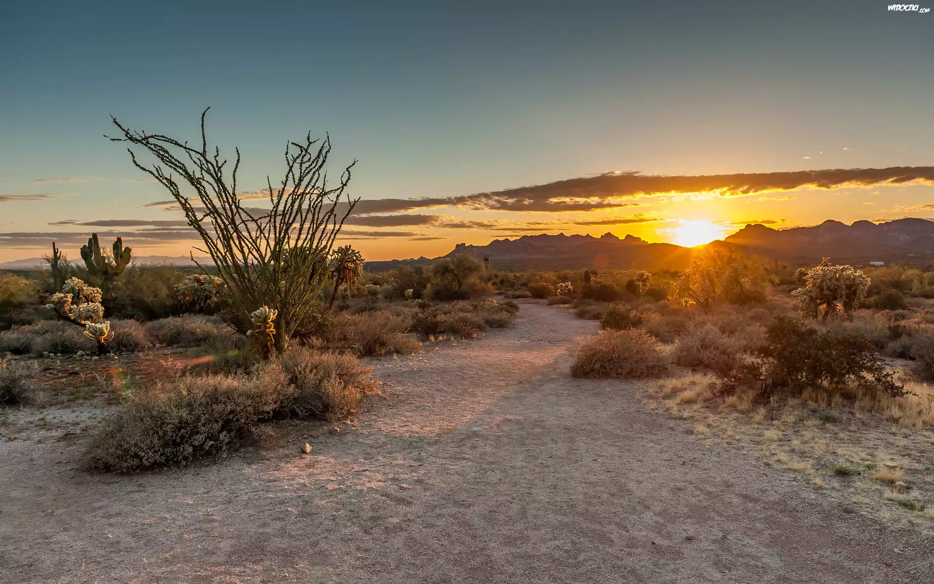 Zdjęcia, Wschód słońca, Pustynia, Roślinność