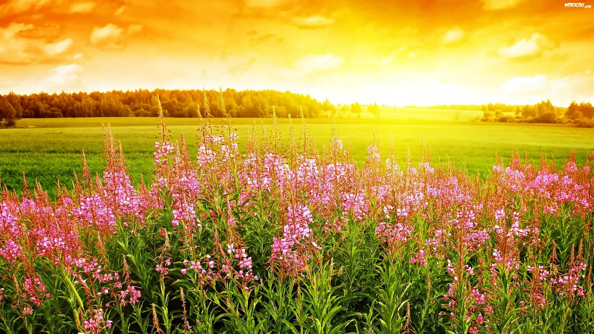 Zdjęcia, Łąka, Wierzbówka, Wschód Słońca