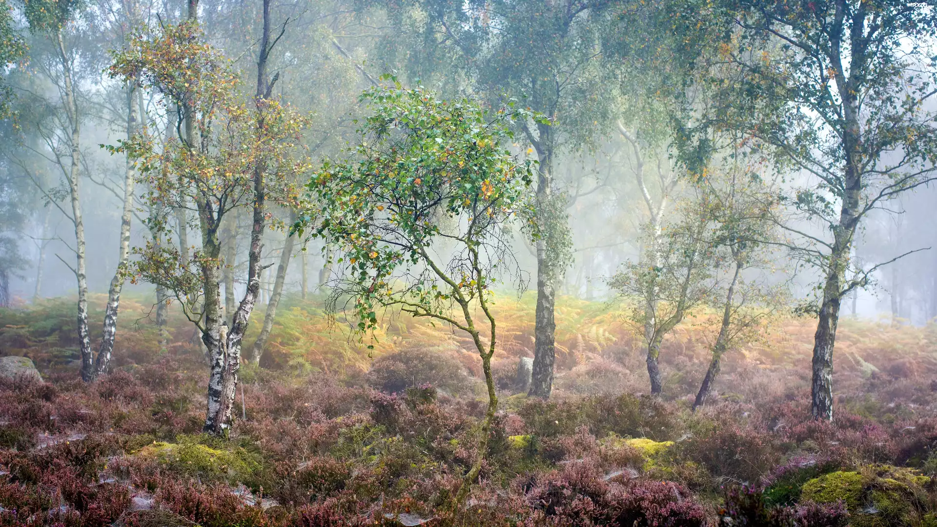Wschód, Słońca, Brzozowy, Zagajnik, Mgła