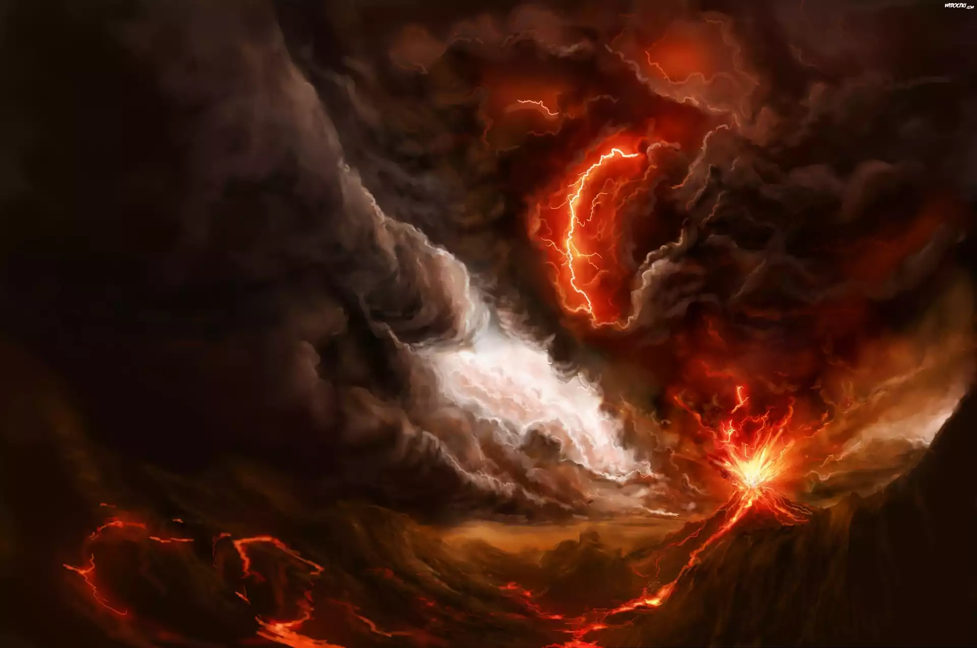 Zdjęcia, Wulkan,lawa,ogień,pioruny