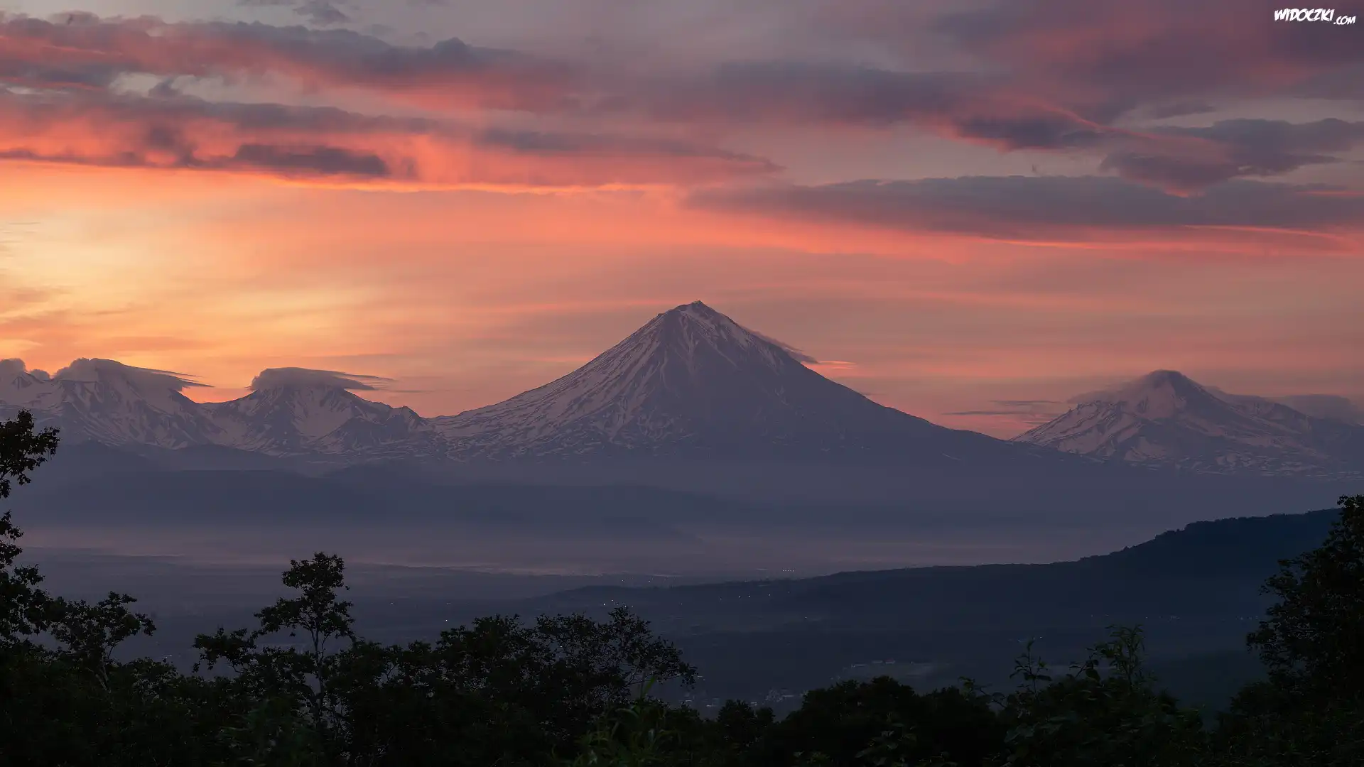 Zdjęcia, Góry, Wulkan, Kluczewska Sopka, Zachód słońca, Kamczatka, Rosja
