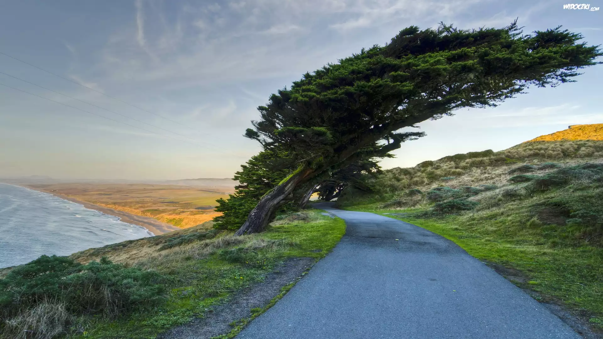 Zdjęcia, Wybrzeże, Morze, Drogi, Drzewo