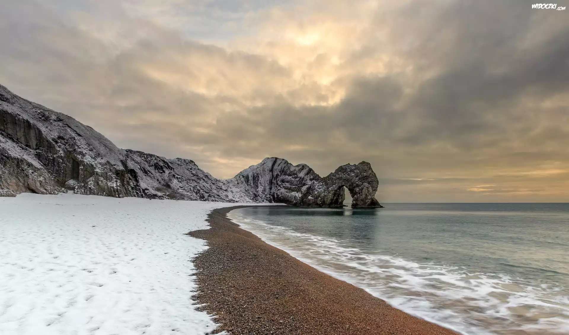 Zdjęcia, Anglia, Wybrzeże Jurajskie, Morze, Durdle Door, Skały, Zima, Wybrzeże