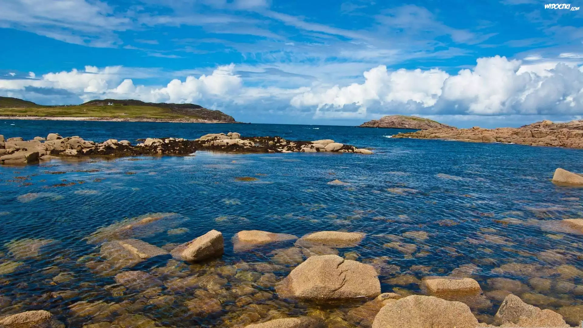 Zdjęcia, Wybrzeże, Wyspa, Góry, Kamienie, Chmury