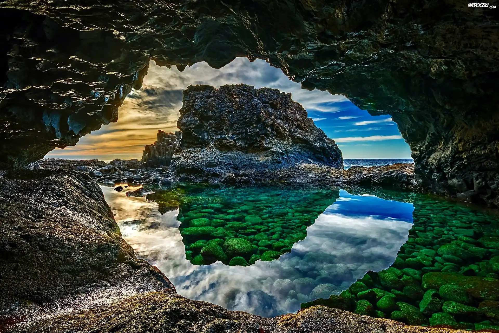 Zdjęcia, Wybrzeże, Jaskinia, Skały, Woda, Kamienie, Odbicie