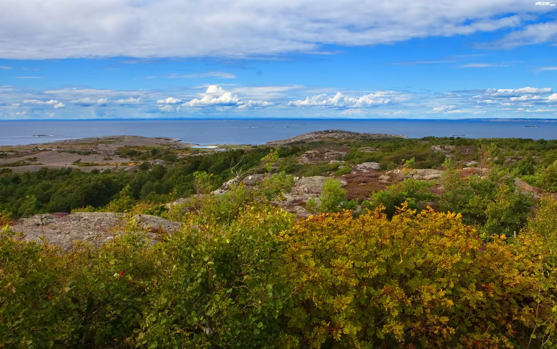 Wybrzeże, Skały, Lasy, Krzewy