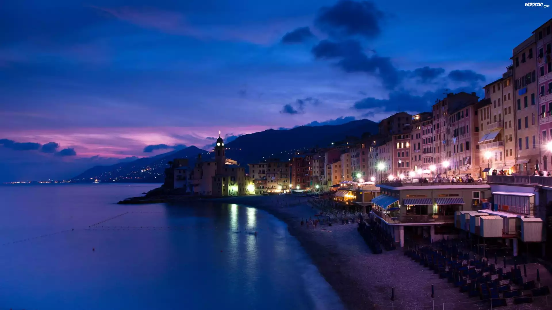 Zdjęcia, Wybrzeże, Morze, Miasto, Noc