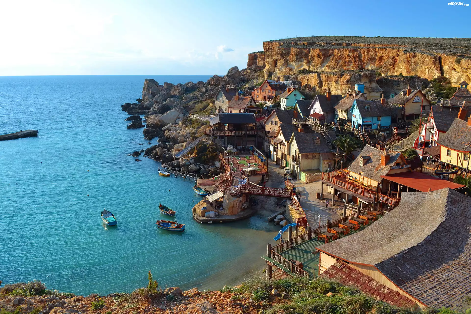 Zdjęcia, Malta, Miasteczko, Mellieha, Wybrzeże, Morze