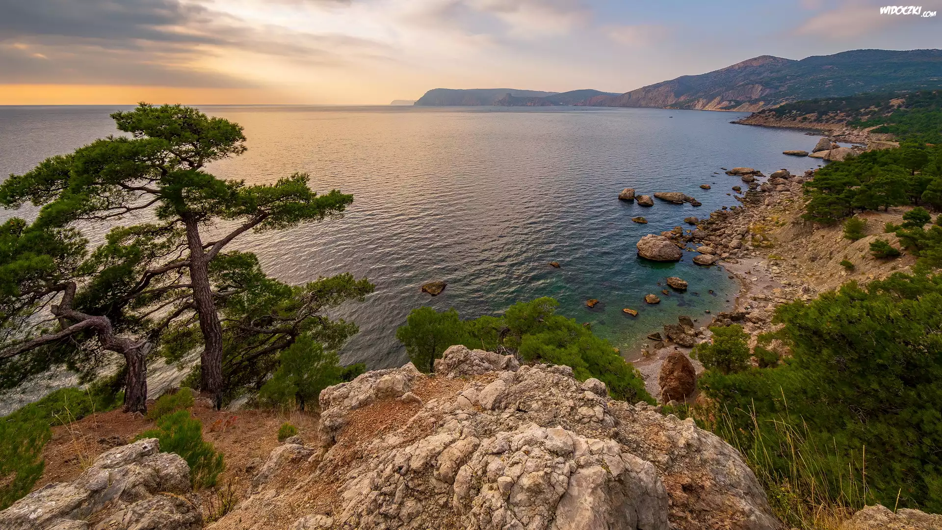 Zdjęcia, Morze, Wybrzeże, Skały, Drzewo, Sosna, Krym, Rosja