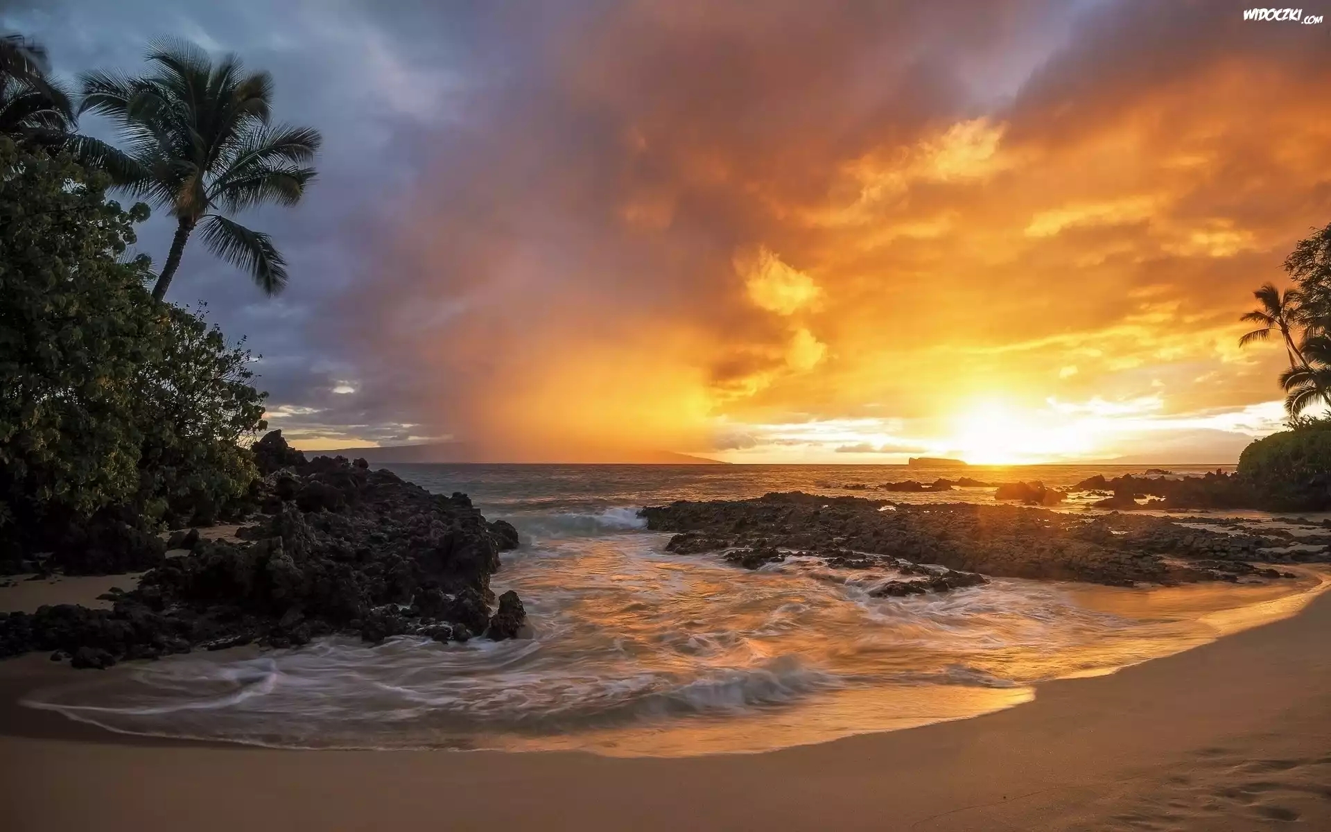 Zdjęcia, Wybrzeże, Zachód Słońca, Morze, Plaża