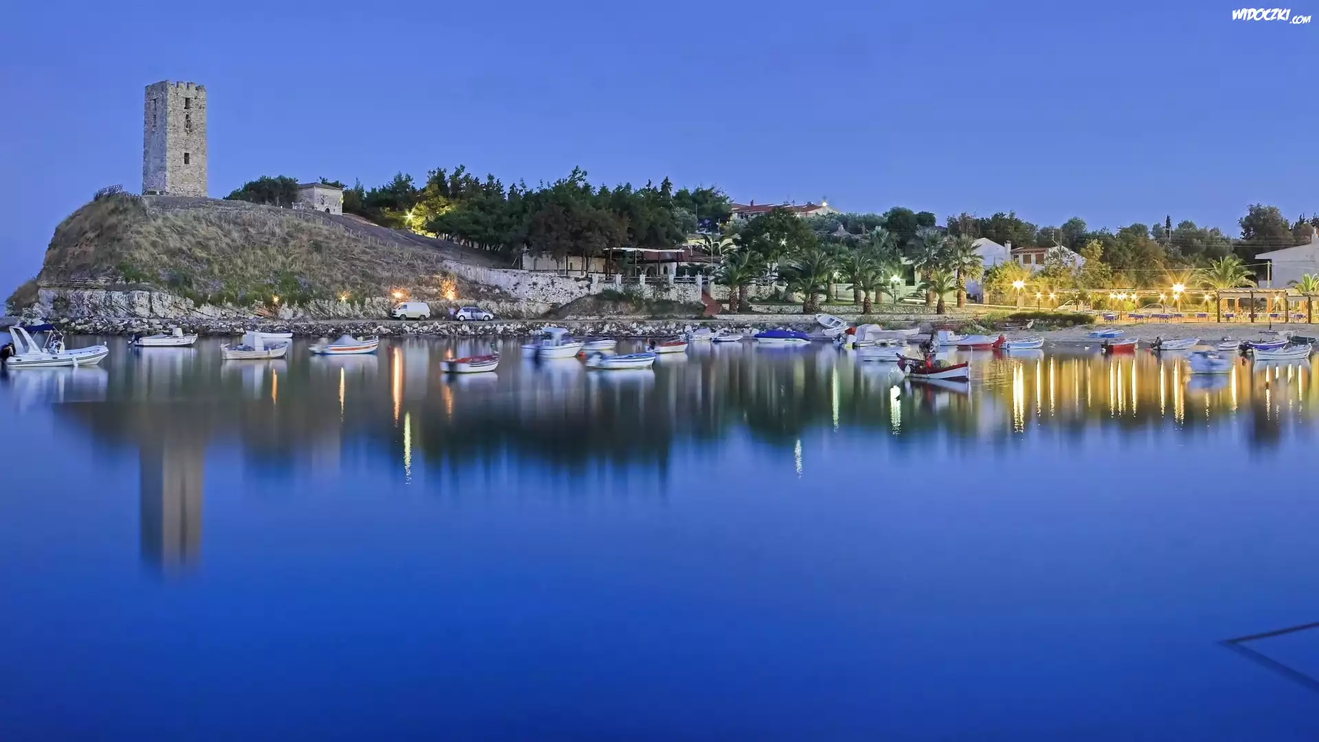 Zdjęcia, Wybrzeże, Zacumowane, Łódki, Wieczór
