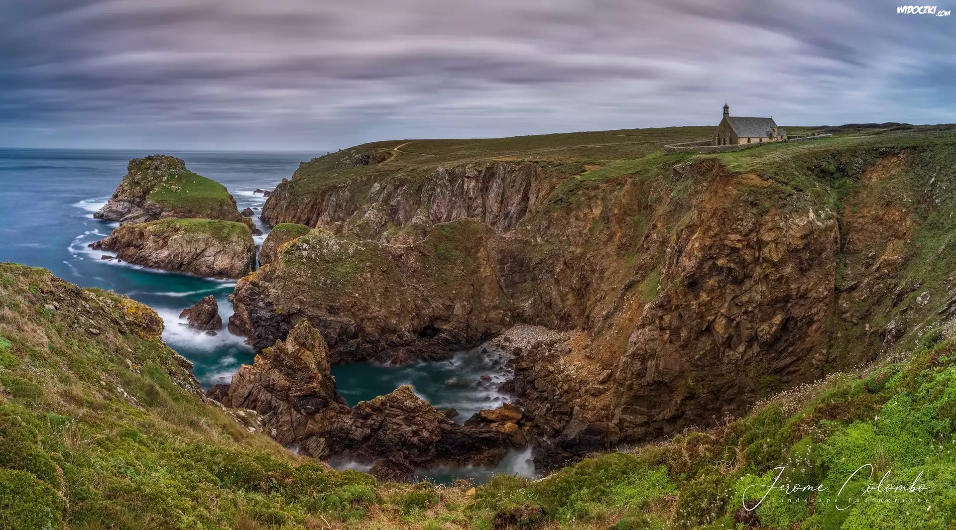 Wybrzeże, Morze, Skały, Przylądek, Cypel, Pointe du Van, Kaplica, Chapelle de Saint They, Gmina Plogoff, Francja |
