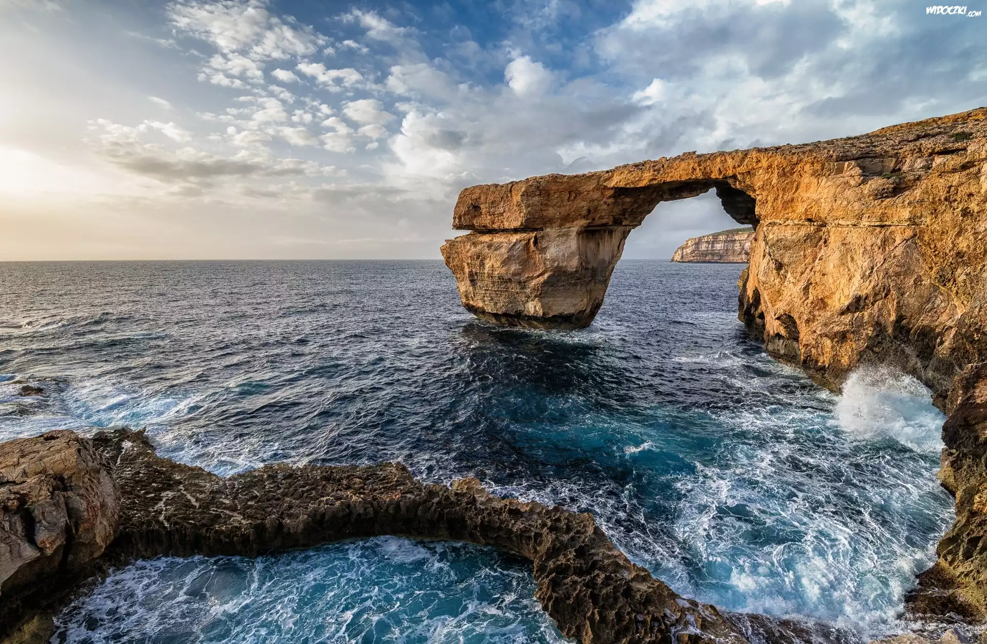 Zdjęcia, Malta, Wybrzeże, Wyspa Gozo, Morze, Skały, Most, Skalny