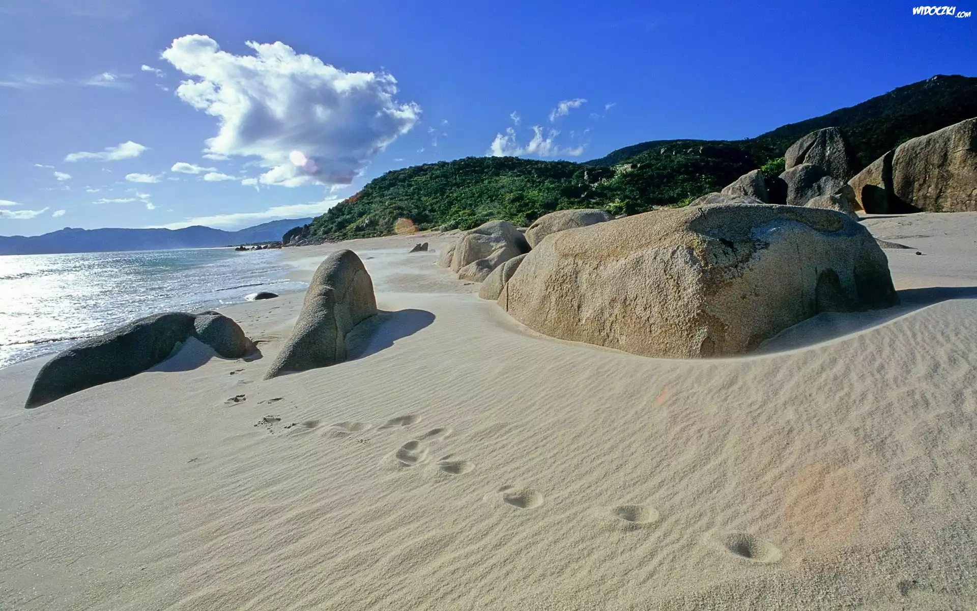 Zdjęcia, Wybrzeże, Plaża, Skały, Góry