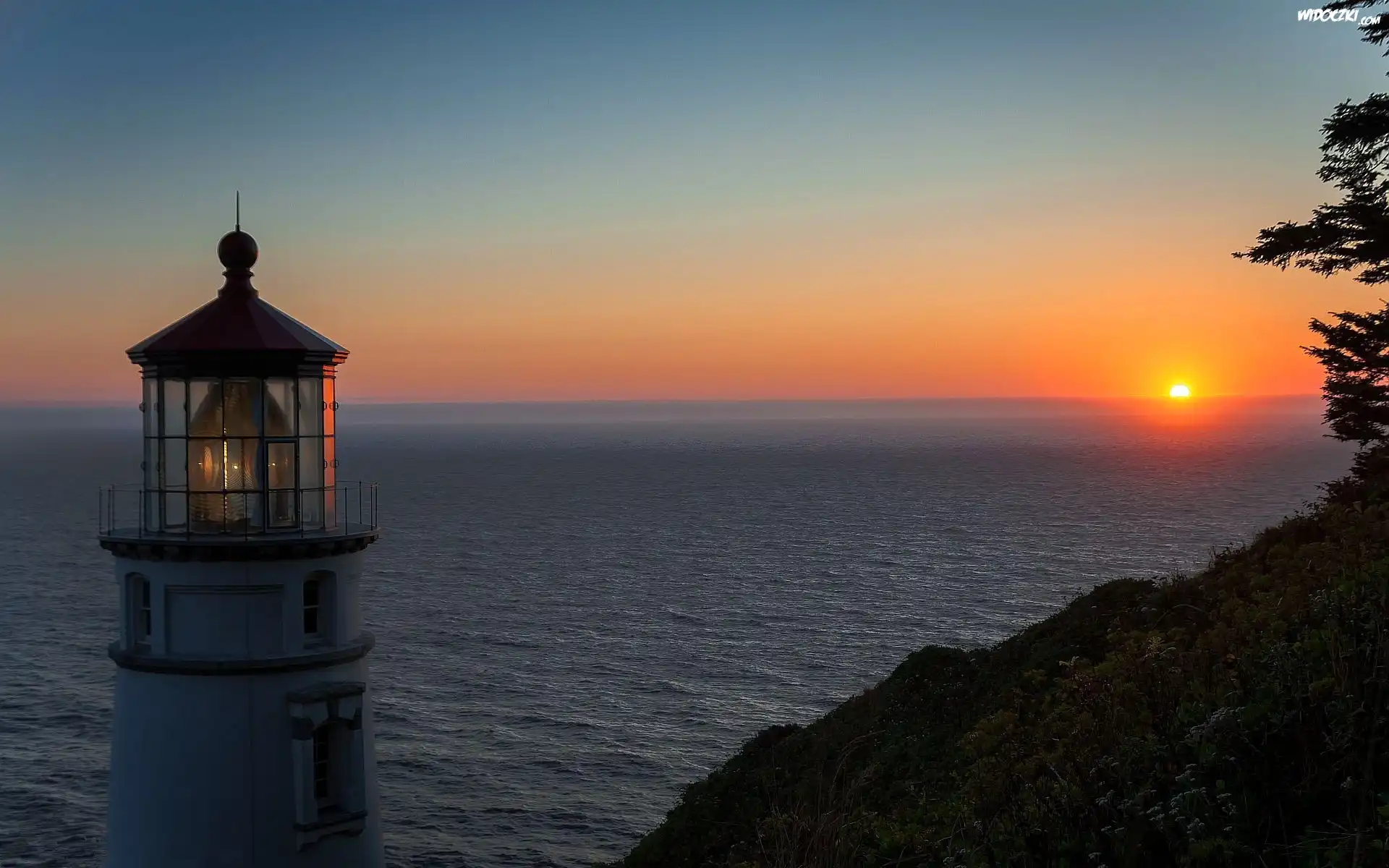 Zdjęcia, Wybrzeże, Latarnia, Morska, Zachód, Słońca, Morze