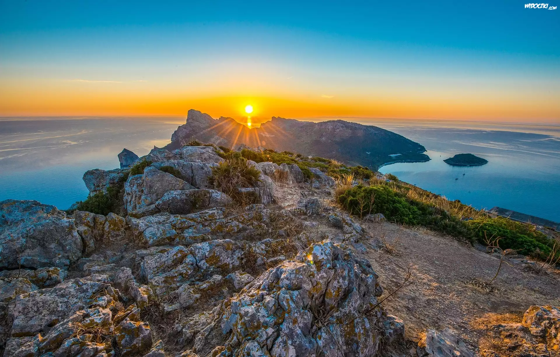 Wybrzeże, Hiszpanii, Wschód, Słońca, Skały