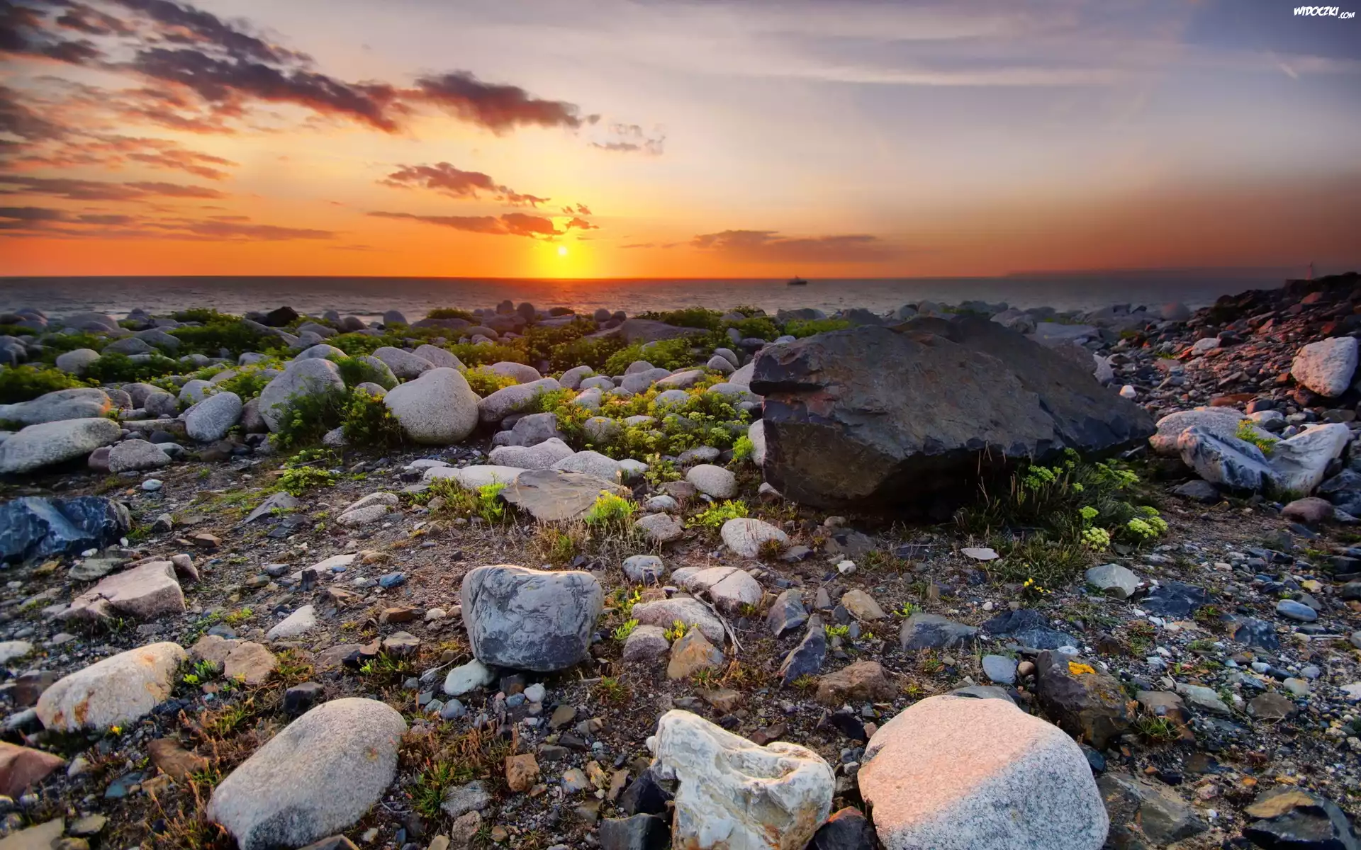 Zdjęcia, Wybrzeże, Zachód Słońca, Kamienie