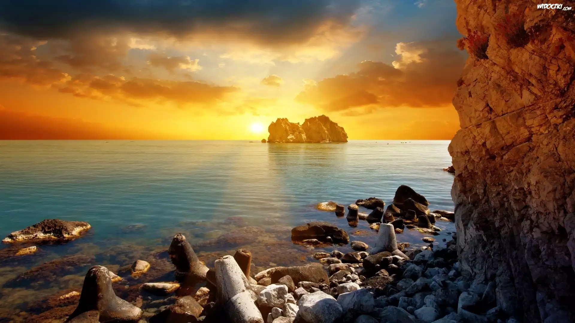 Zdjęcia, Wybrzeże, Morze, Kamienie, Klify, Zachód, Słońca