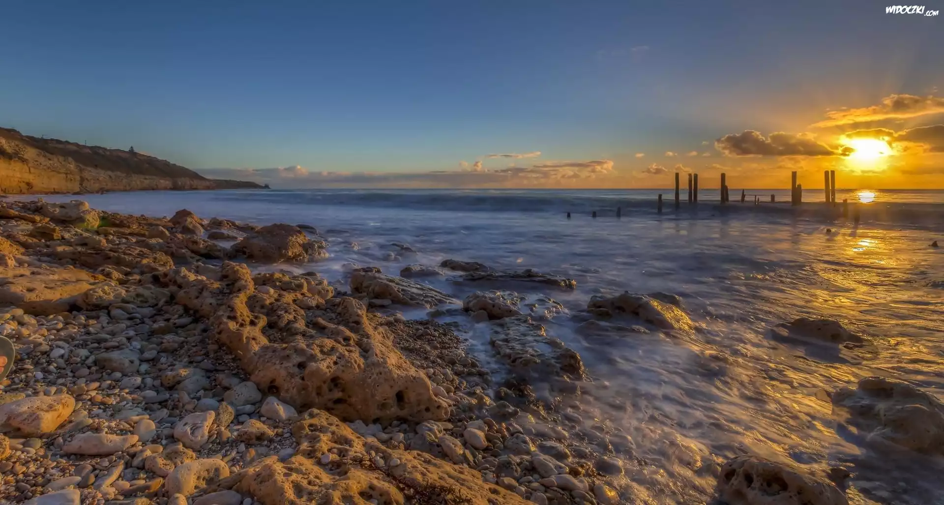Zdjęcia, Wybrzeże Skały, Kamienie, Plaża, Zachód, Słońca