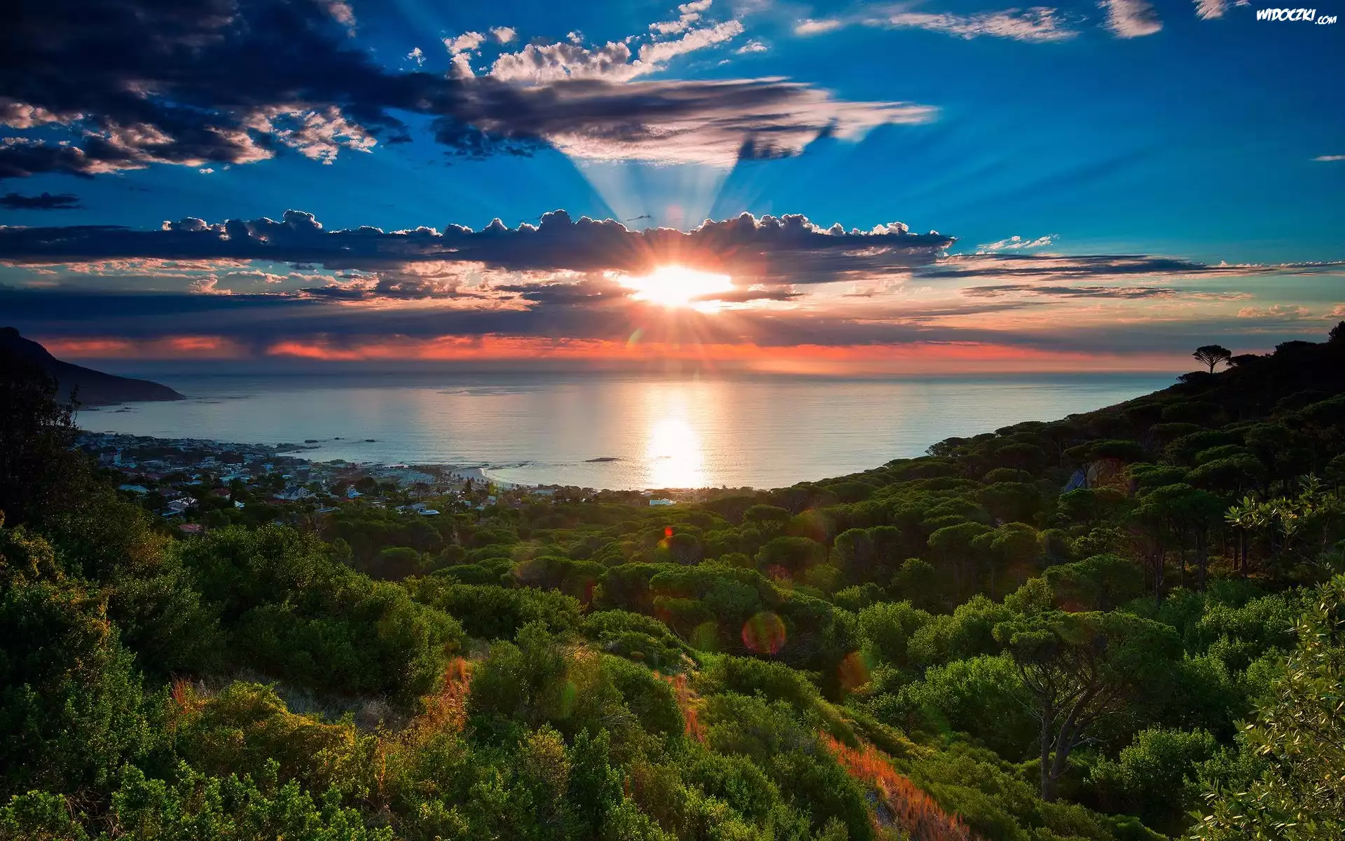 Zdjęcia, Wybrzeże, Morze, Zachód Słońca
