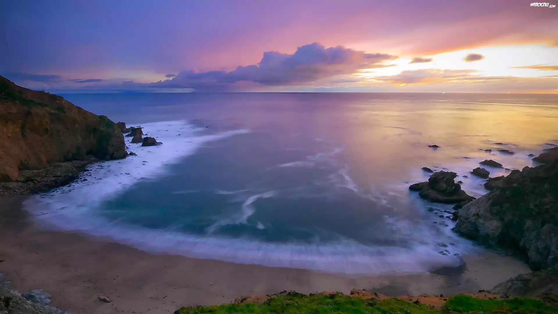 Zdjęcia, Wybrzeże, Plaża, Zachodzące, Słońce