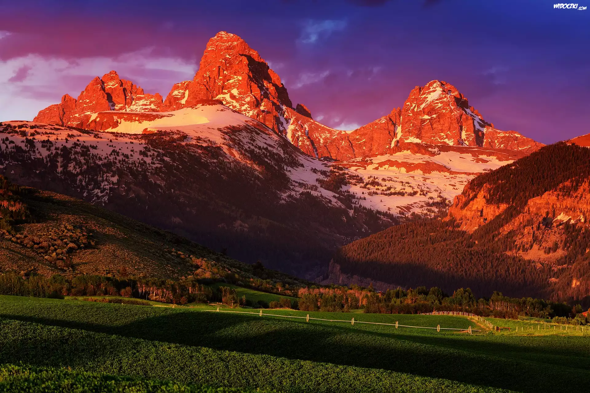 Zdjęcia, Stany Zjednoczone, Stan Wyoming, Park Narodowy Grand Teton, Góry, Łąki