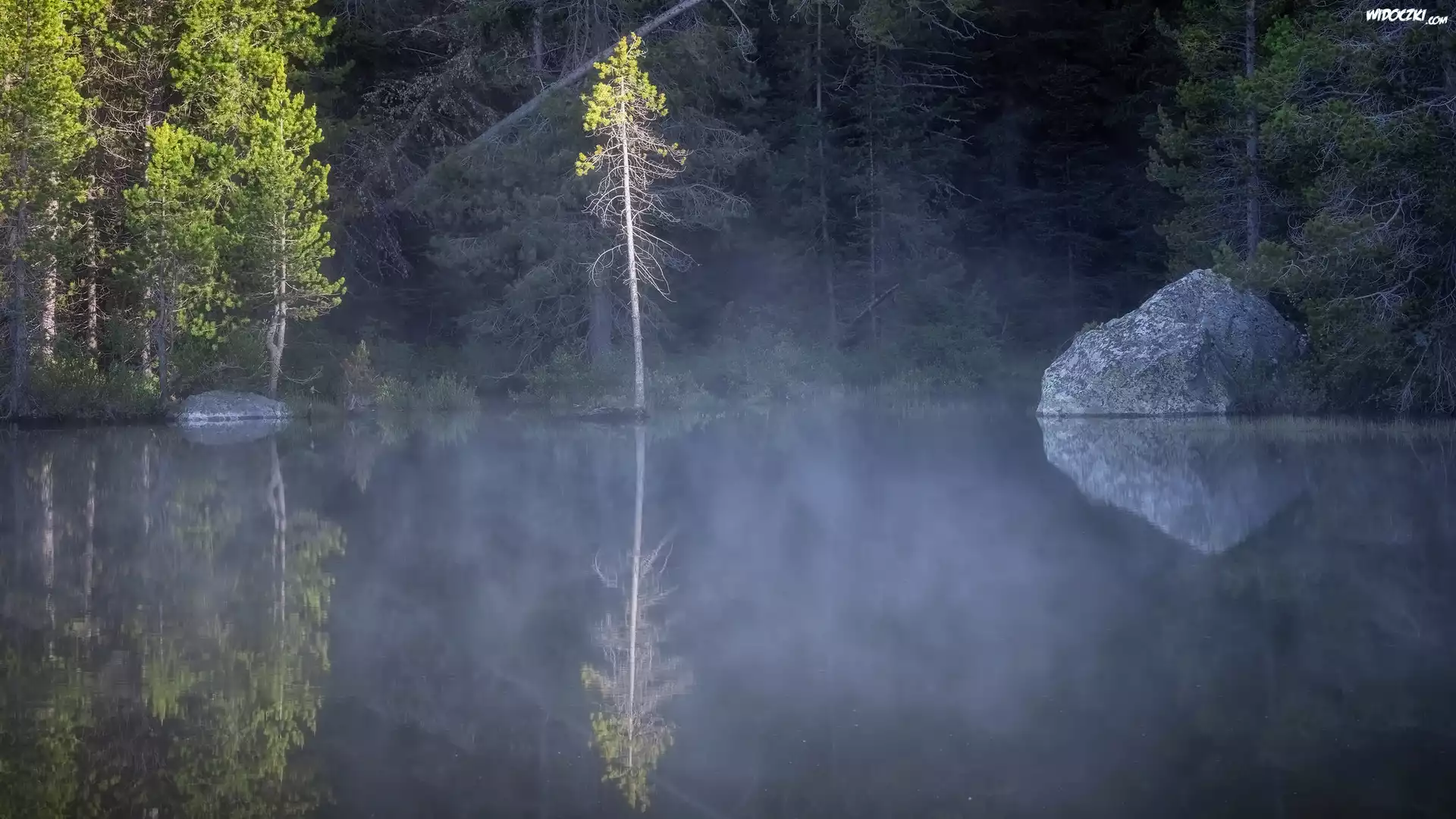 Zdjęcia, Drzewa, Jezioro, String Lake, Park Narodowy Grand Teton, Stan Wyoming, Stany Zjednoczone