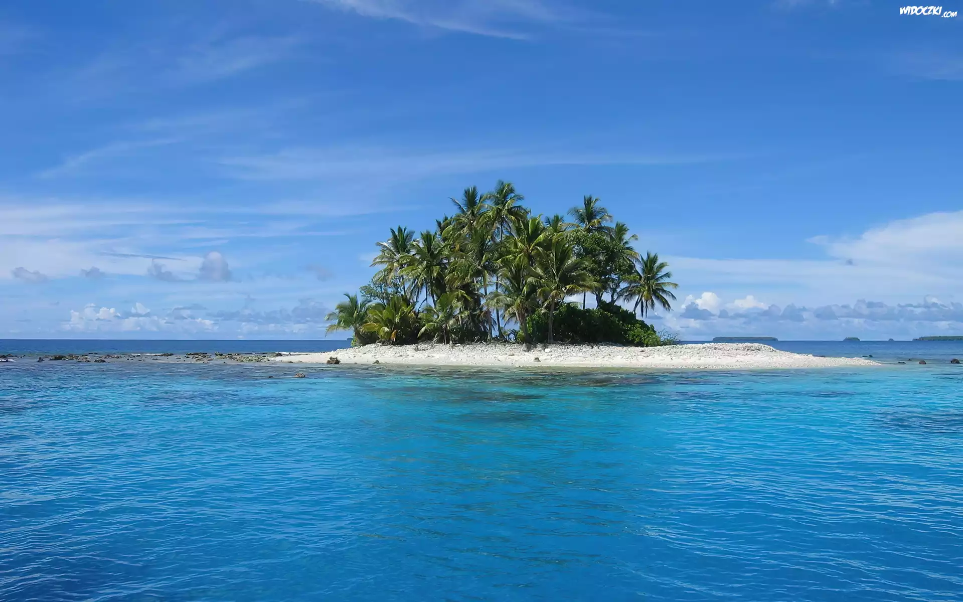 Zdjęcia, Wysepka, Palmy, Błękit, Morza