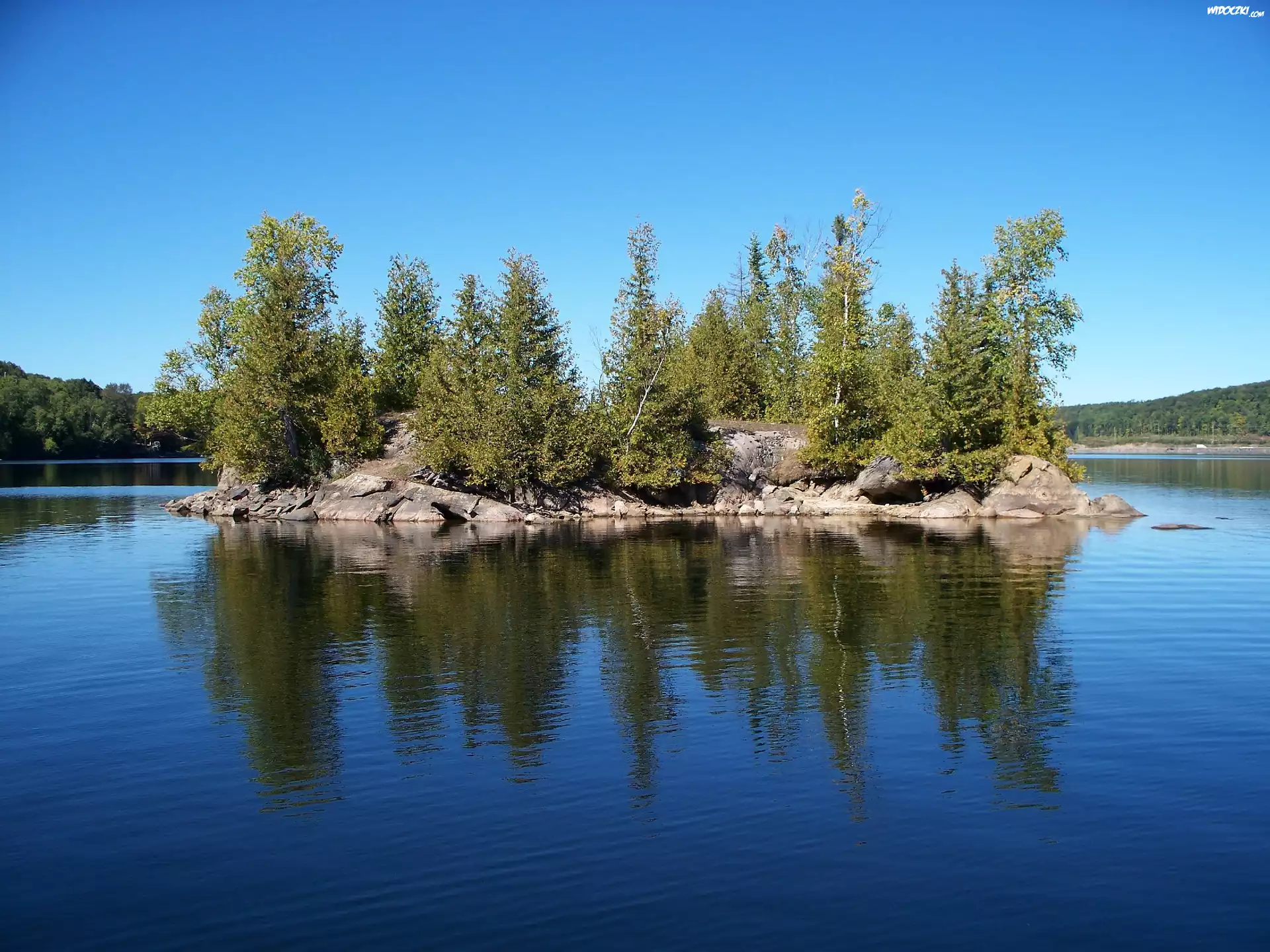 Wysepka, Drzewa, Jezioro, Loon, Kalifornia