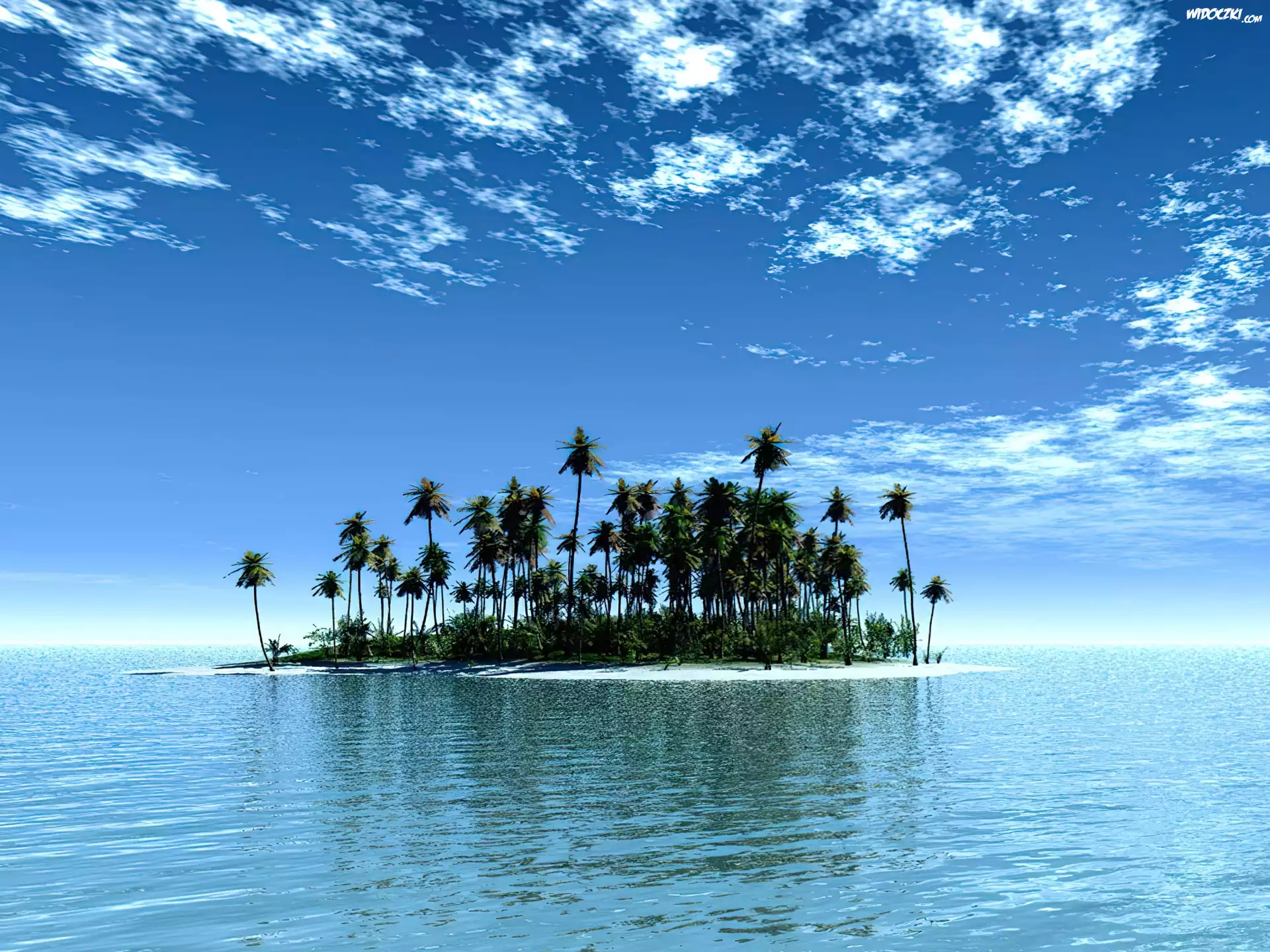 Zdjęcia, Świt, Morze, Wysepka, Palmy