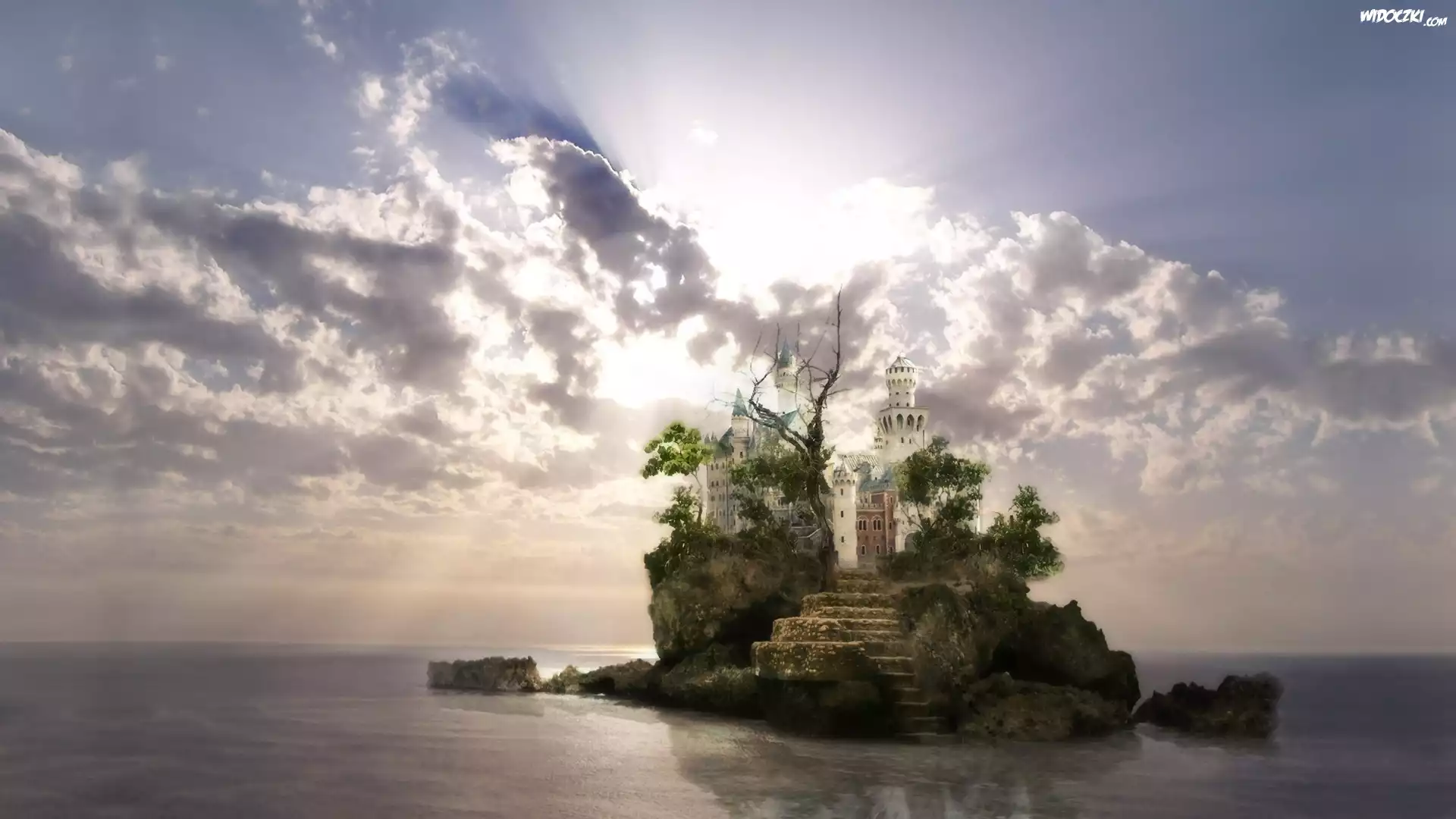 Zdjęcia, Fantasy, Zamek, Wyspa, Grafika