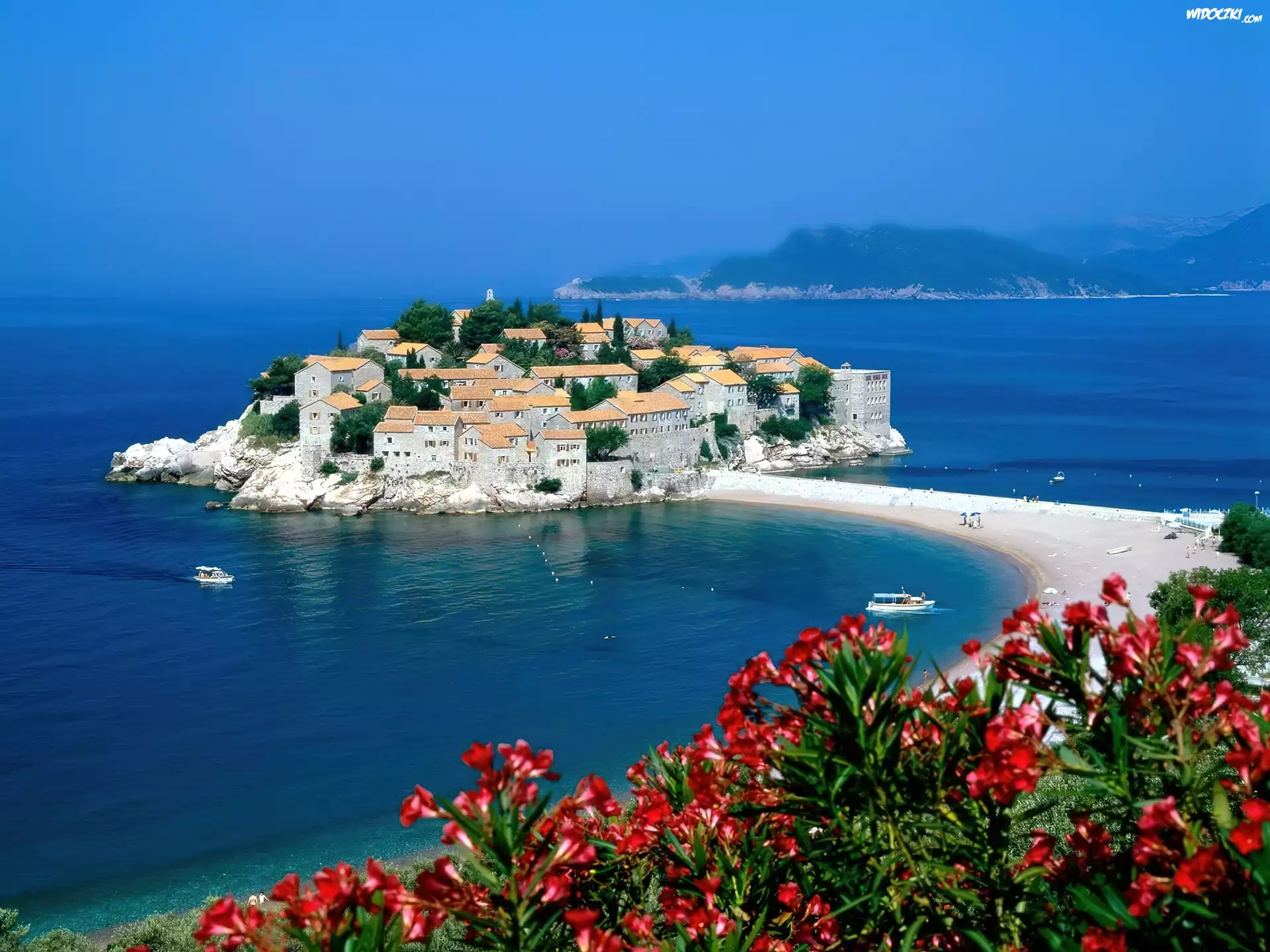 Zdjęcia, Wyspa, Św. Stefana, Czarnogóra, Czerwone, Kwiaty