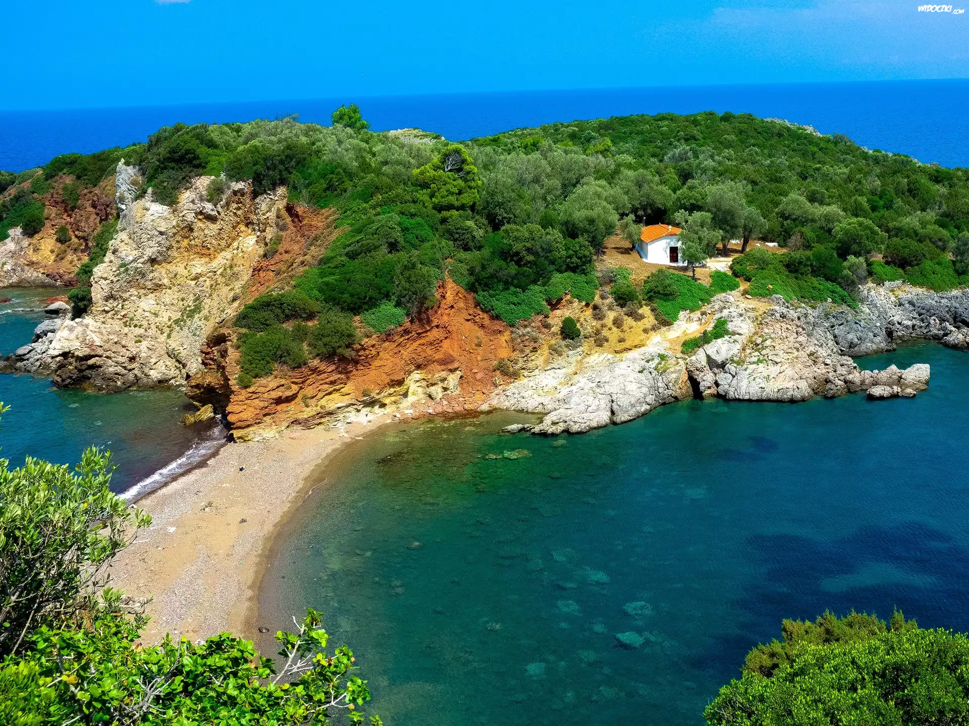 Zdjęcia, Wyspa, Skały, Dom, Ocean, Drzewa, Krzewy