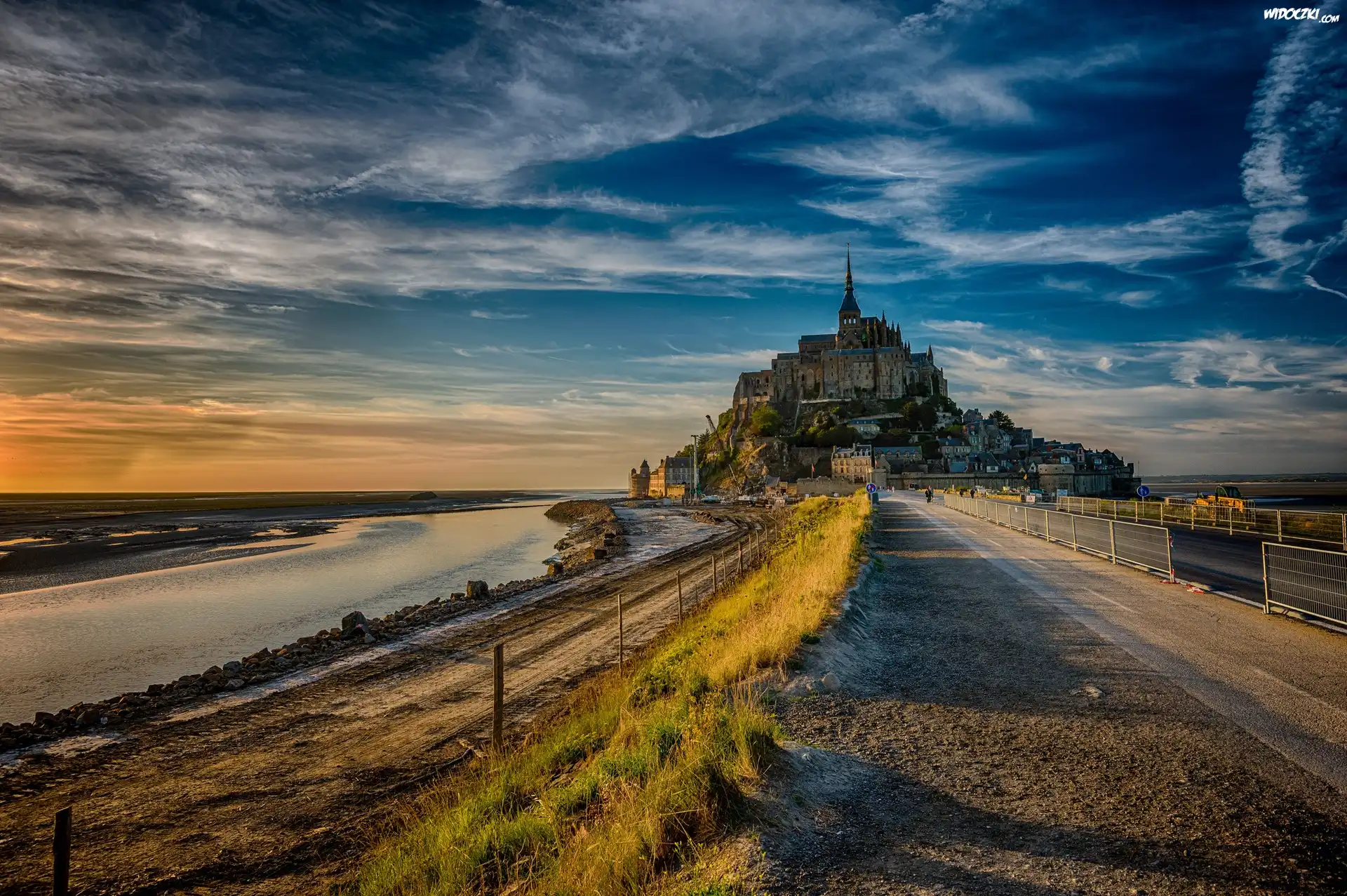 Francja, Wyspa, Mont Saint-Michel, Droga, Opactwo św. Michała Archanioła