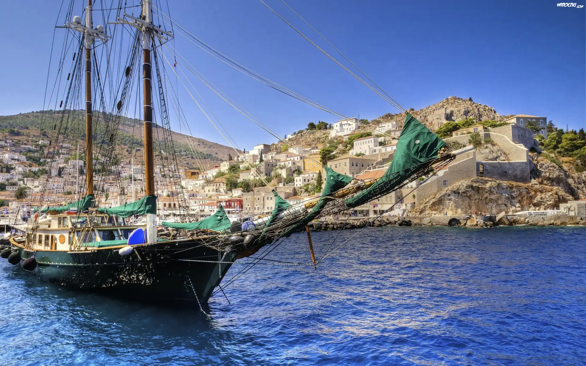 Zdjęcia, Żaglowiec, Morze, Wyspa, Grecja