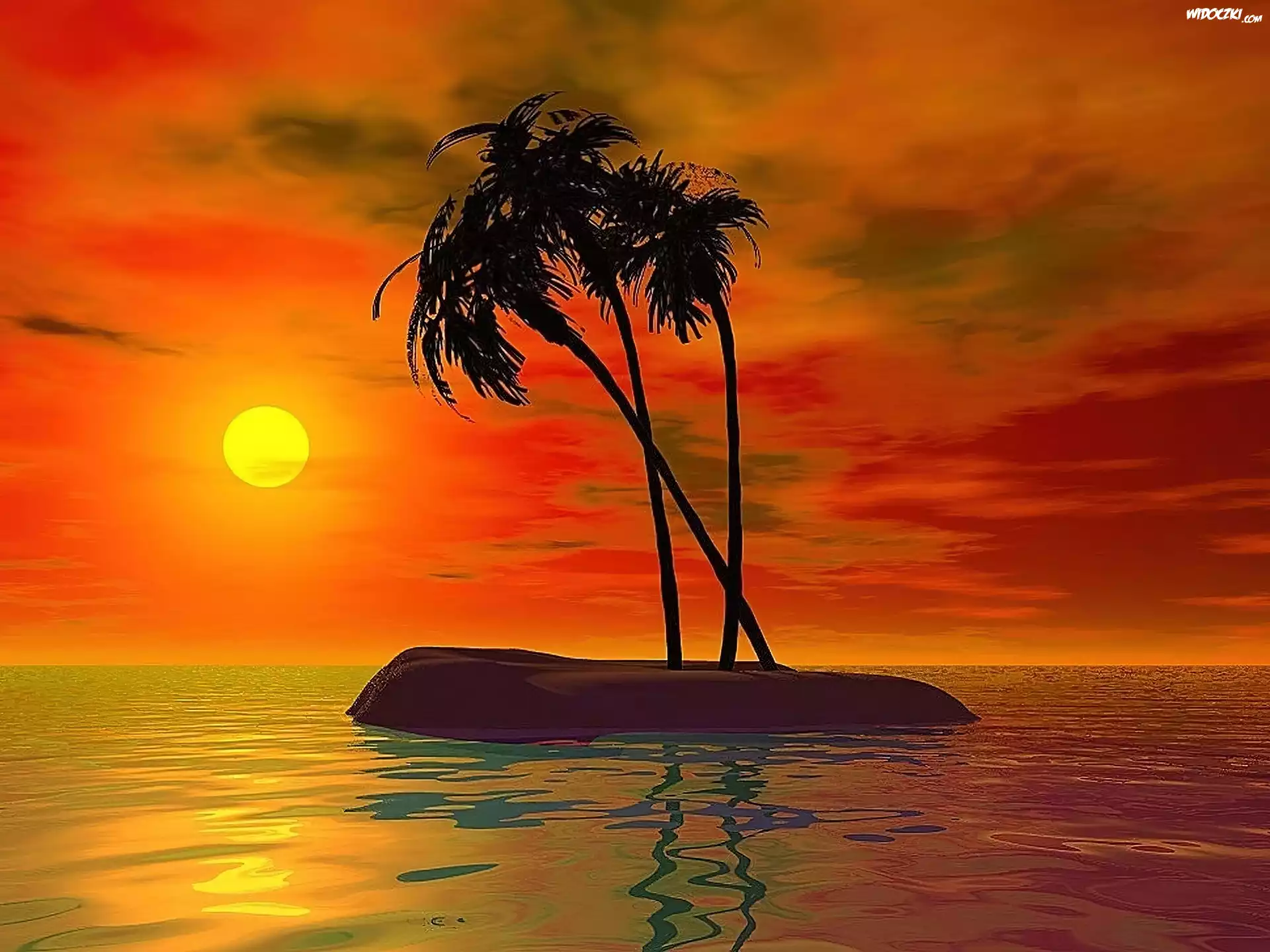 Zdjęcia, Wyspa, Palmy, Słońce, Morze, Grafika