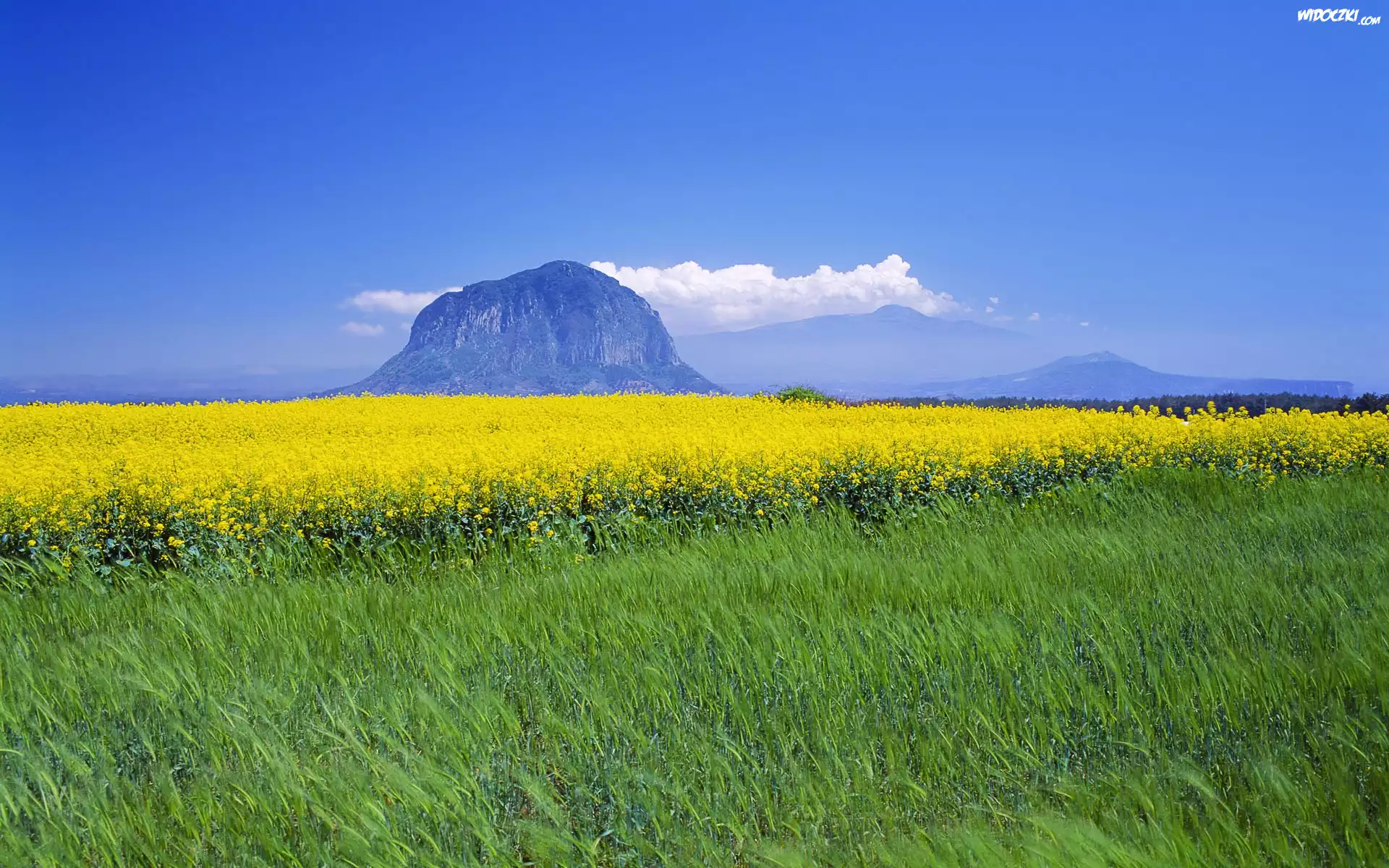 Wyspa, Jeju, Góra, Łąka, Żółte, Kwiaty
