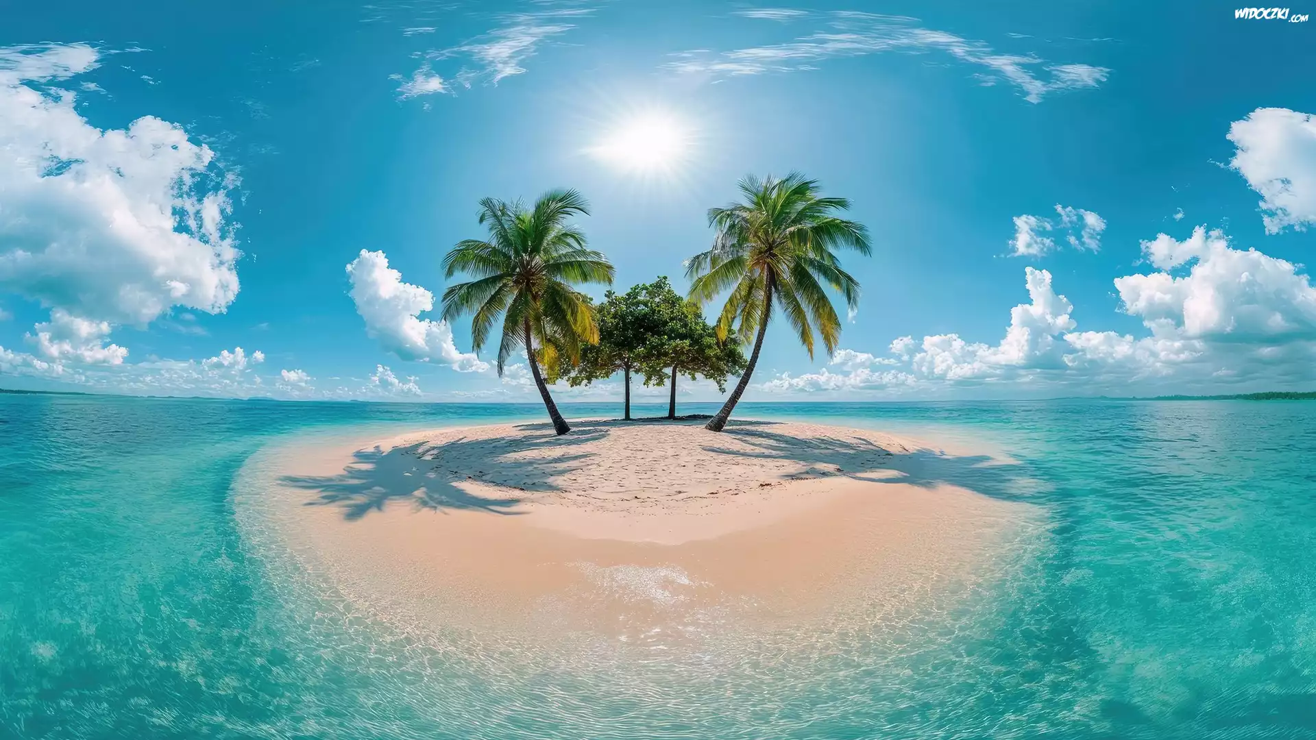Zdjęcia, Morze, Wyspa, Palmy, Plaża, Chmury