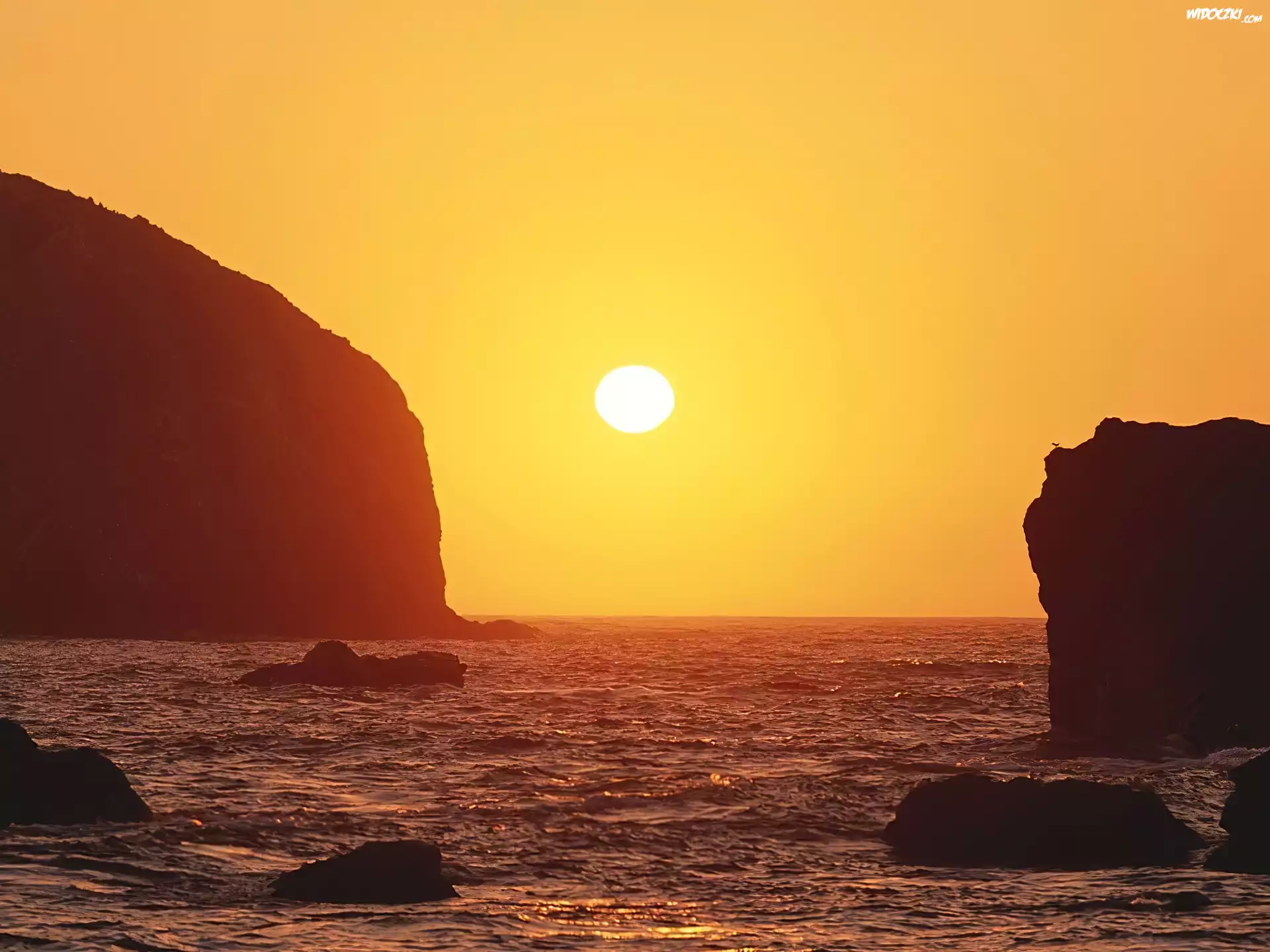 Wyspa, Zachód Słońca, Skały, Morze