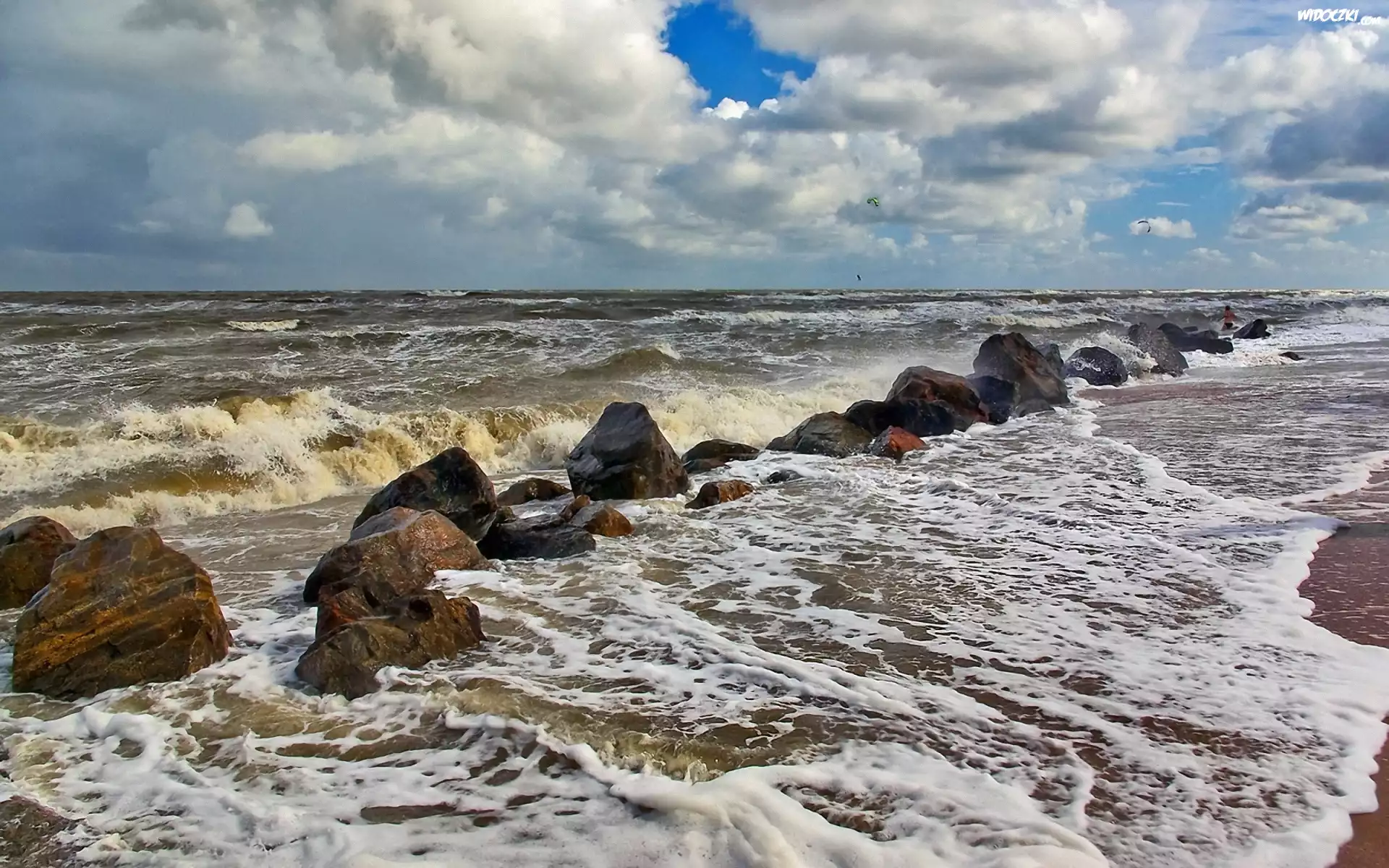 Zdjęcia, Wzburzone, Morze, Kamienie, Niebo