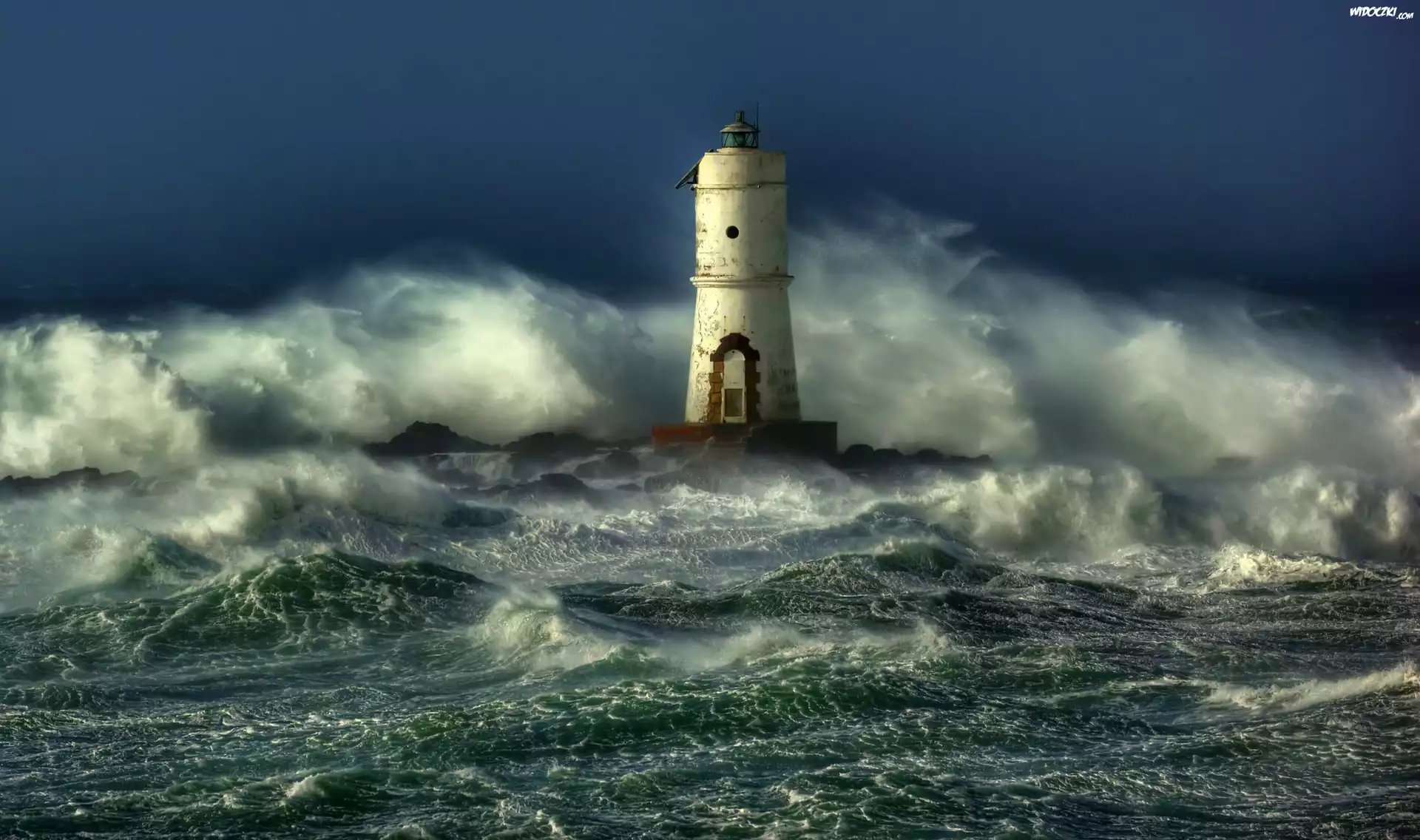Zdjęcia, Wzburzone, Morze, Latarnia, Morska