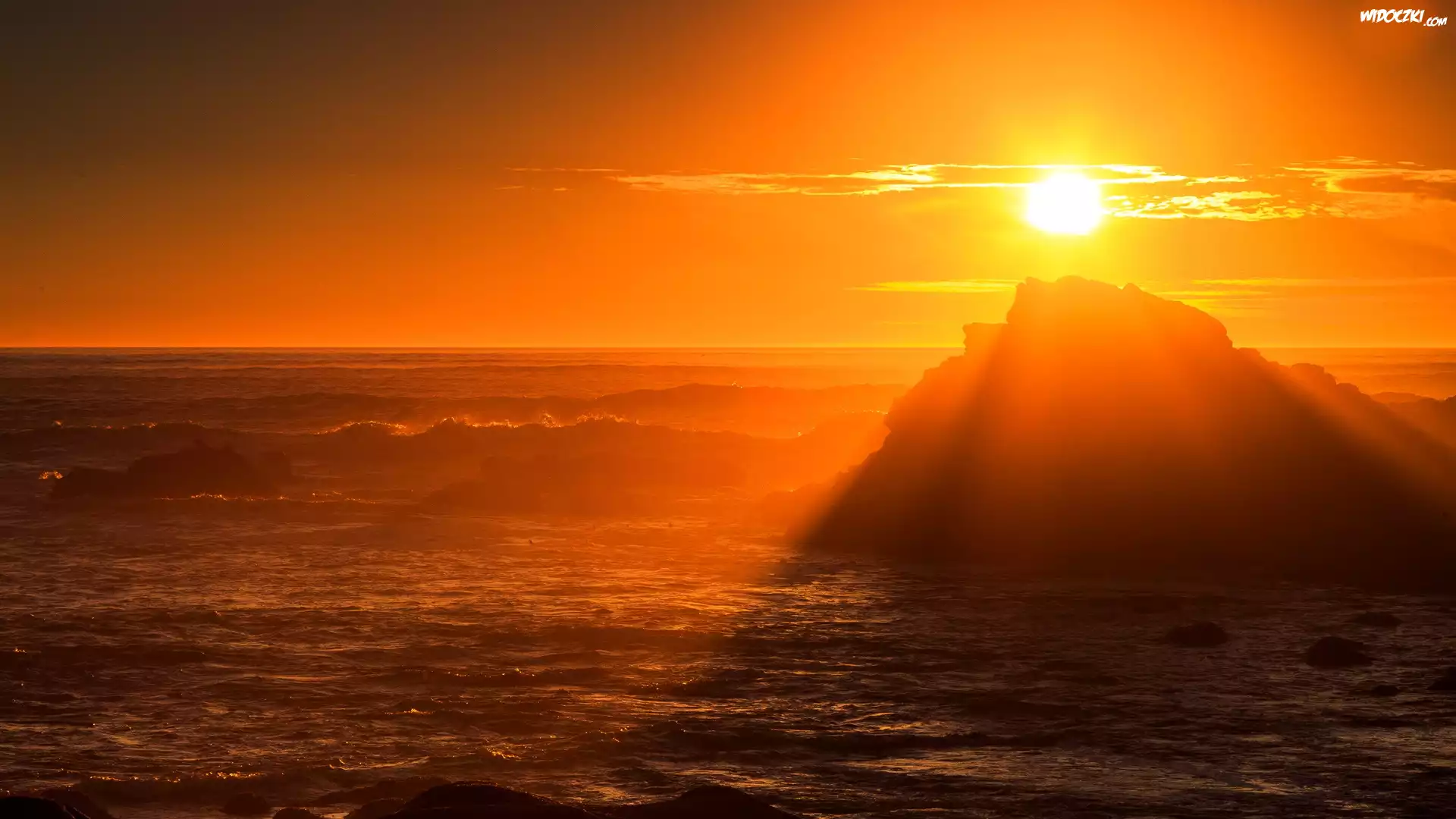 Wzburzone, Morze, Zachód, Słońca, Skała